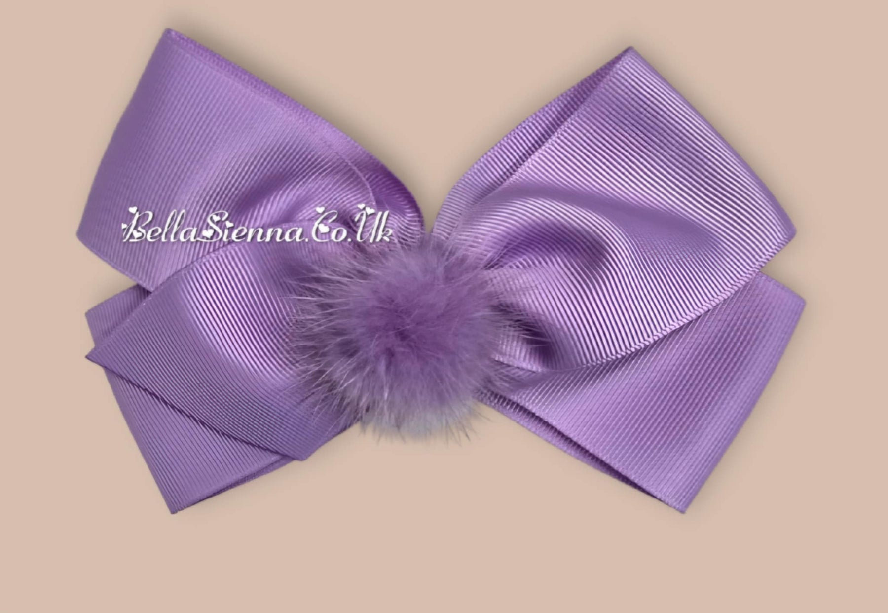 Bowtique London 4 Inch Lilac Grosgrain Medium Size Hair Bow With Fur Pom