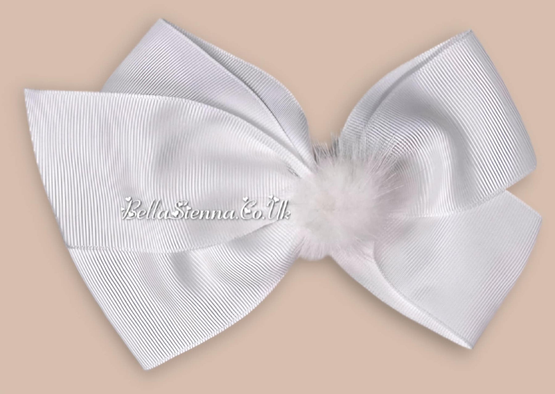 Bowtique London 6 Inch White Grosgrain Large Hair Bow With Fur Pom