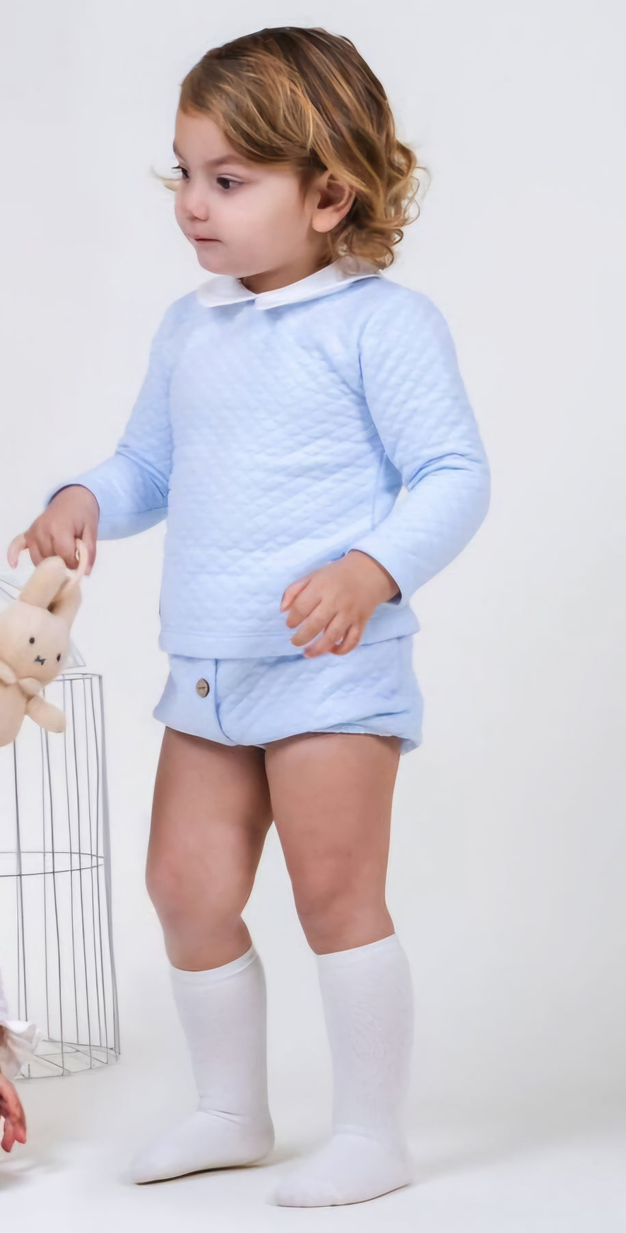 Calamaro Baby Boys Blue & White Jam Pants Set With Collar- 11008