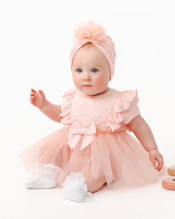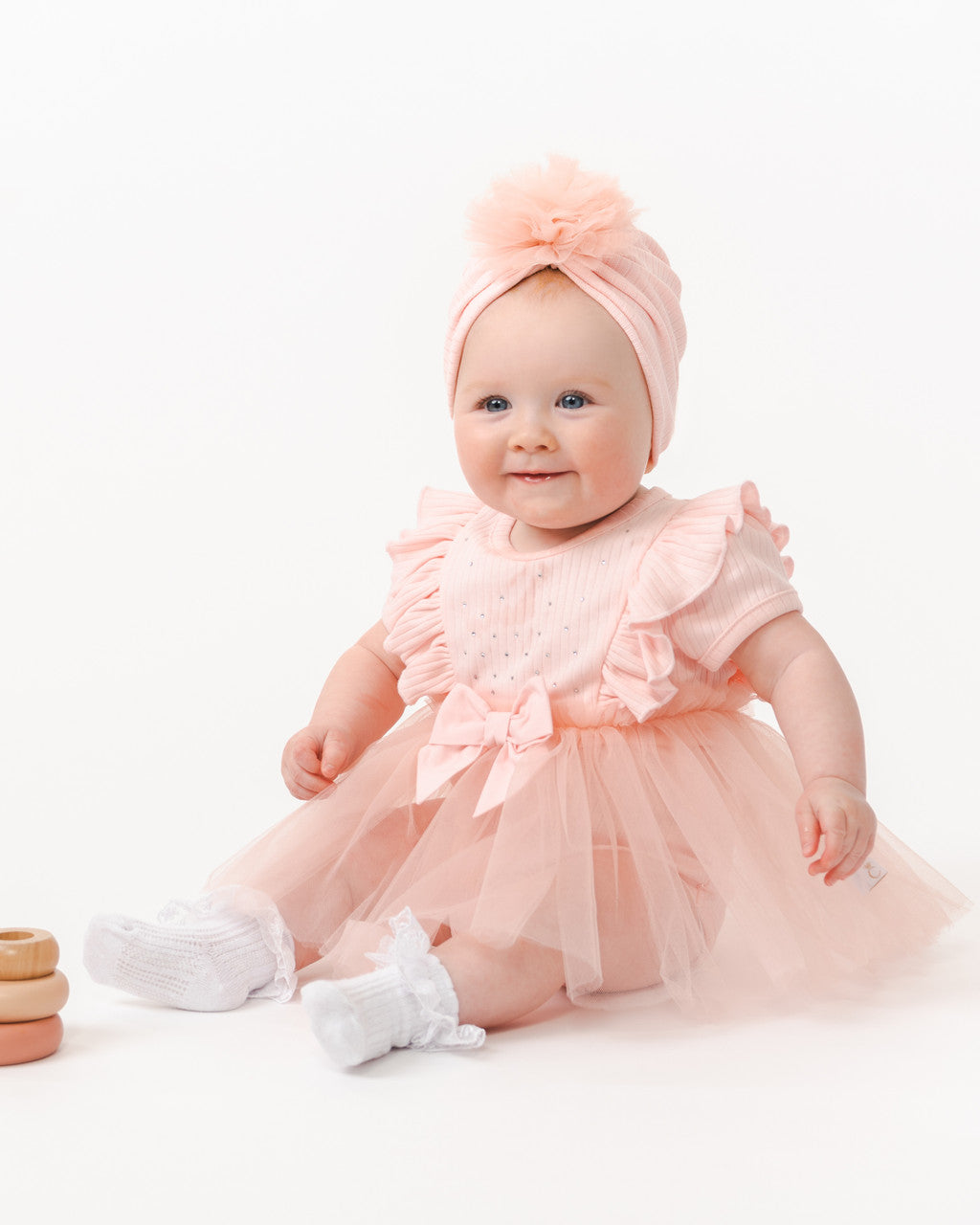 Caramelo Kids Ribbed Tulle Baby Dress With Turban - 031283