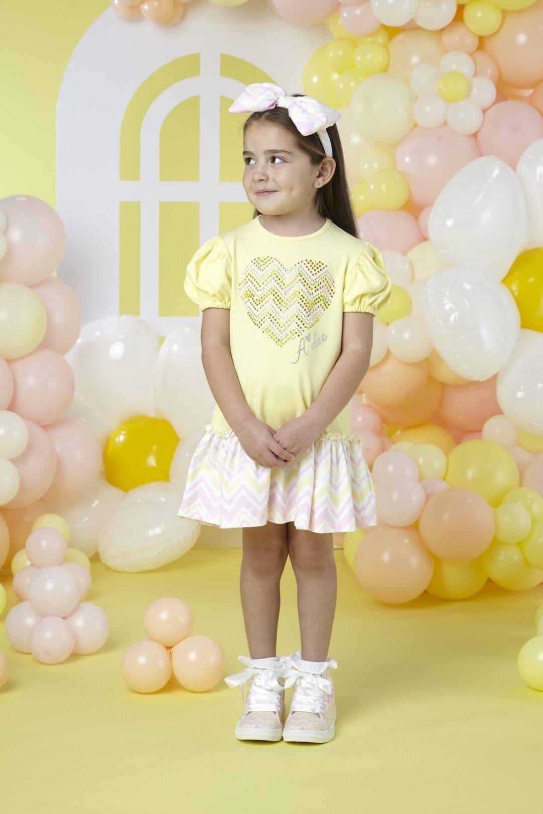 A Dee "LAURA" Chic Chevron Heart Dress - Lemon Cake - S241702