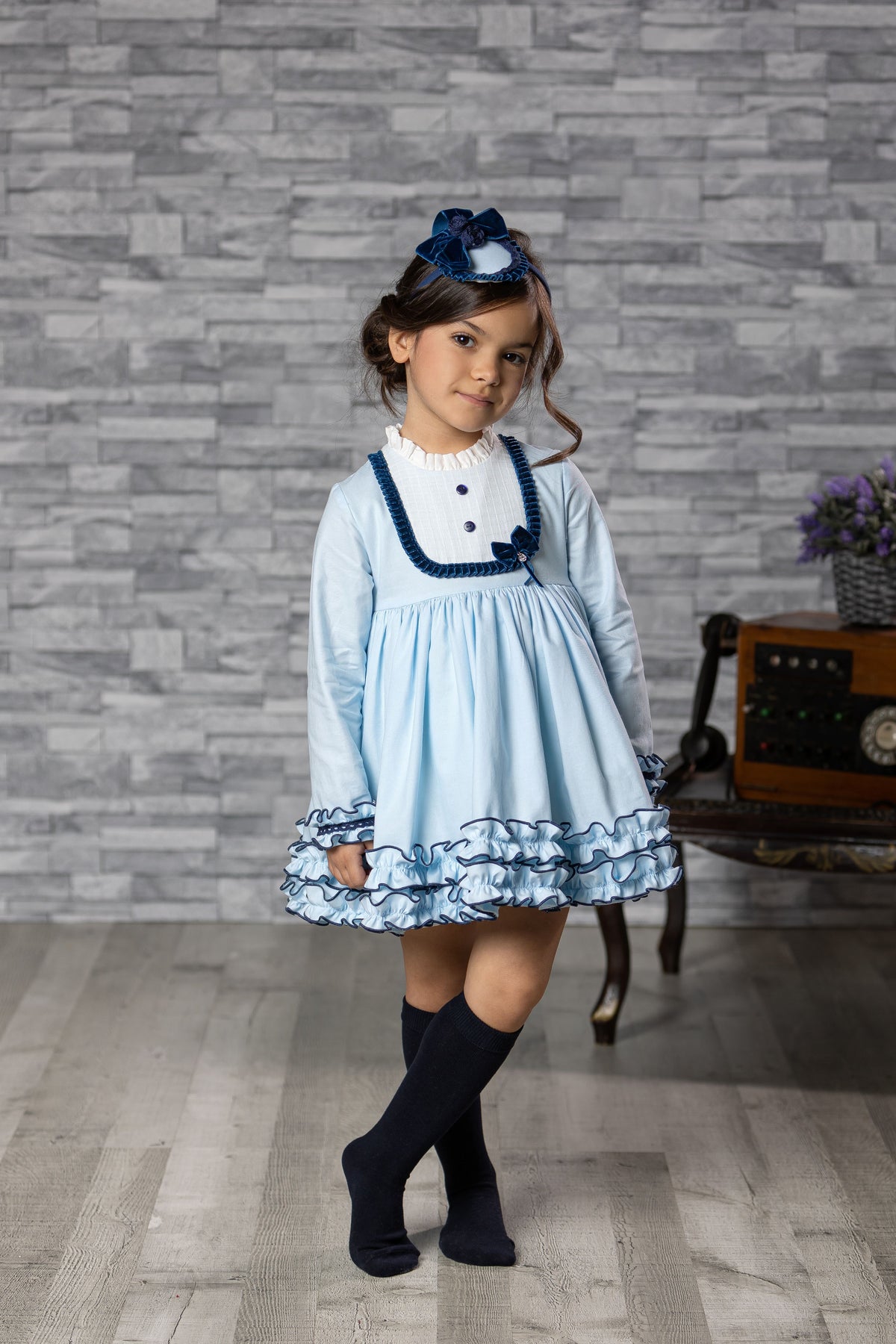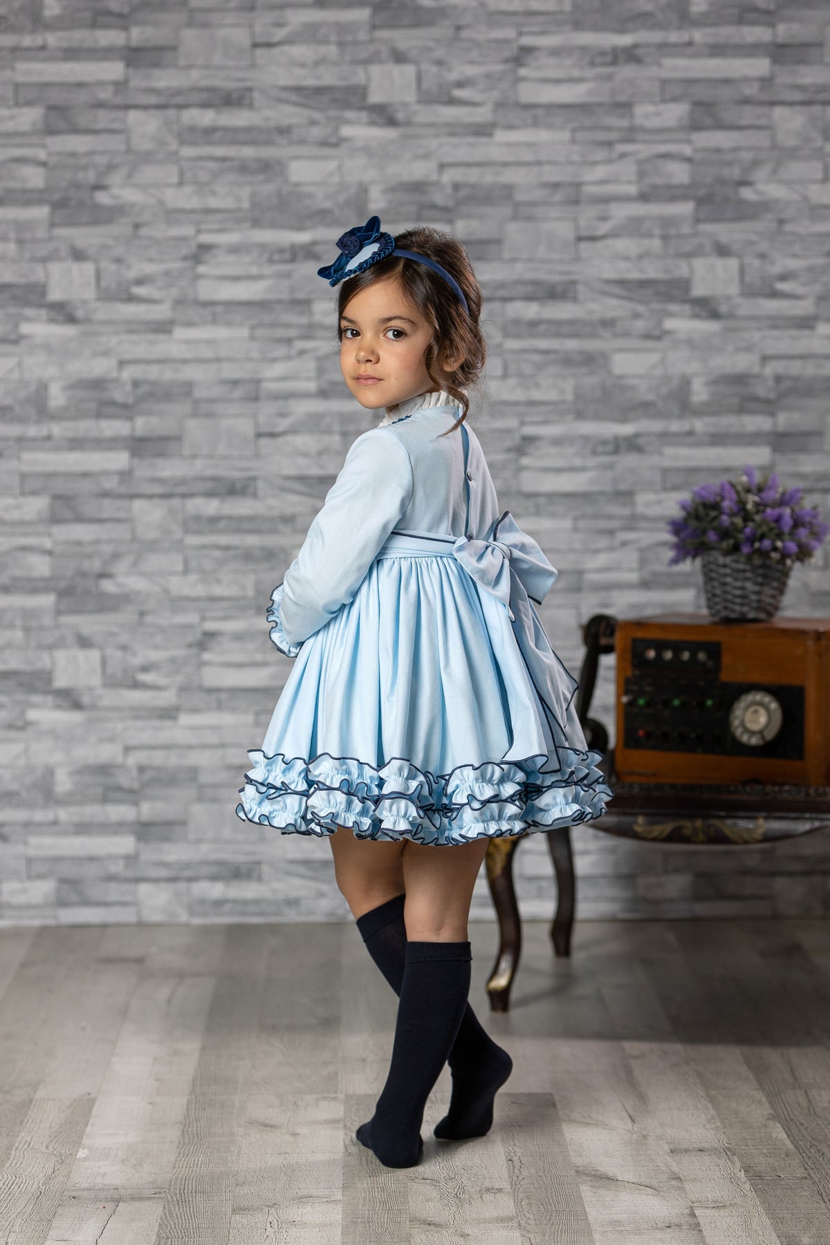 Abuela Tata Blue & Navy Dress With Beautiful Bow Back - 2599343