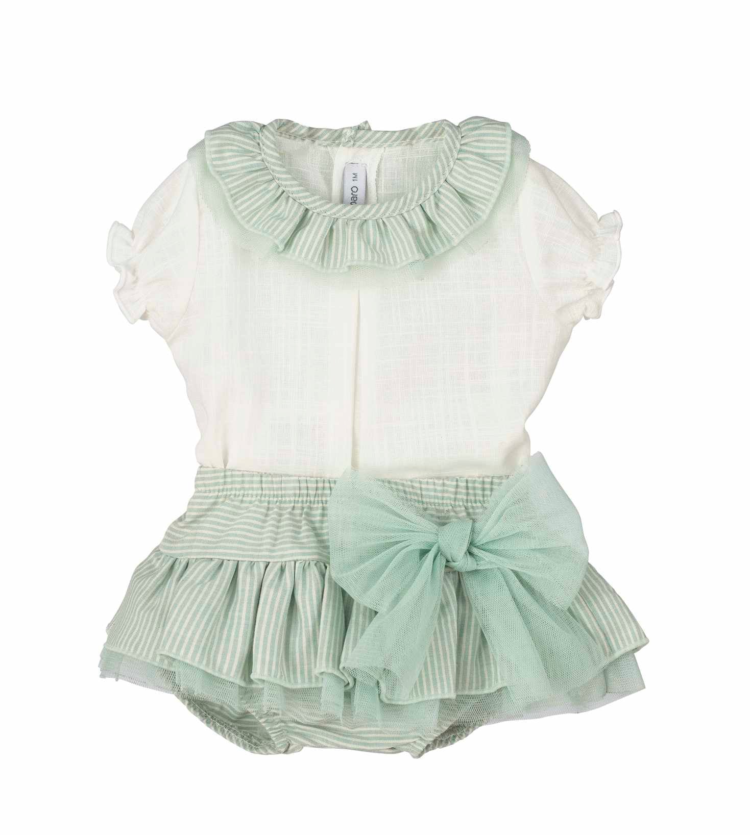 Calamaro Excellent Girls Mint Green Striped Blouse & Frilly Jam Pants Set - 17958