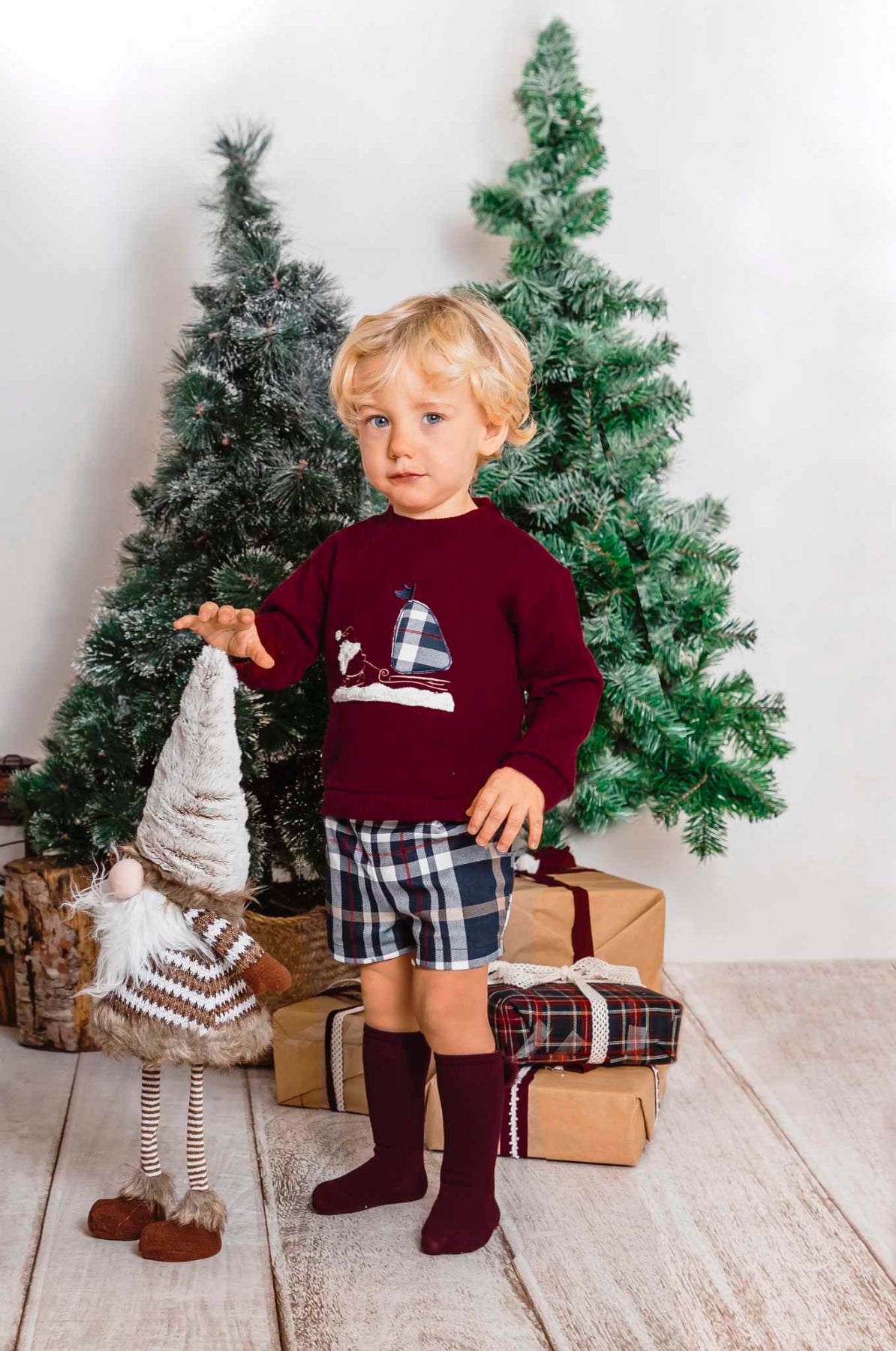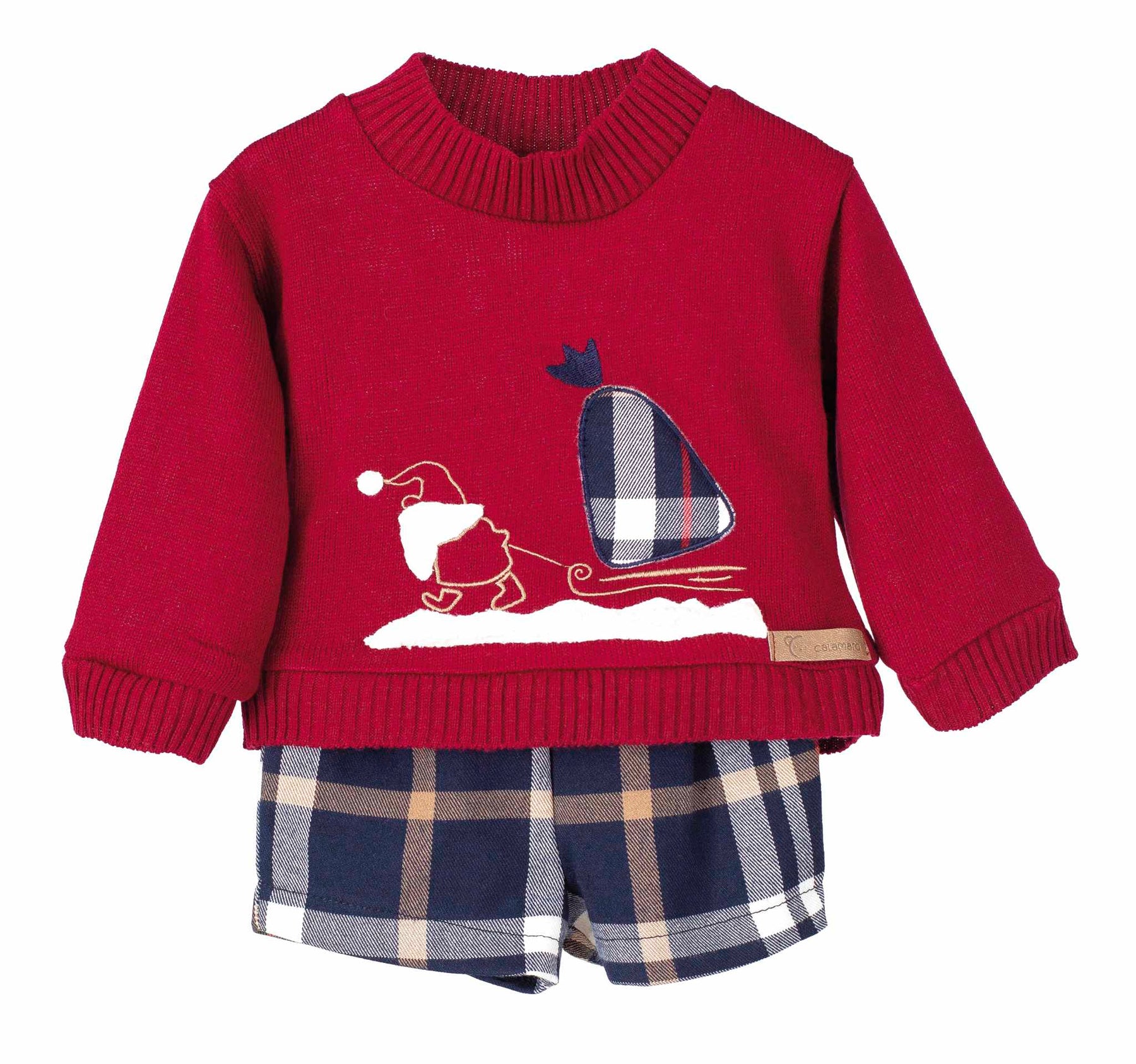 Calamaro Boys Burgundy & Navy Check Christmas Jumper & Shorts Set - 17904