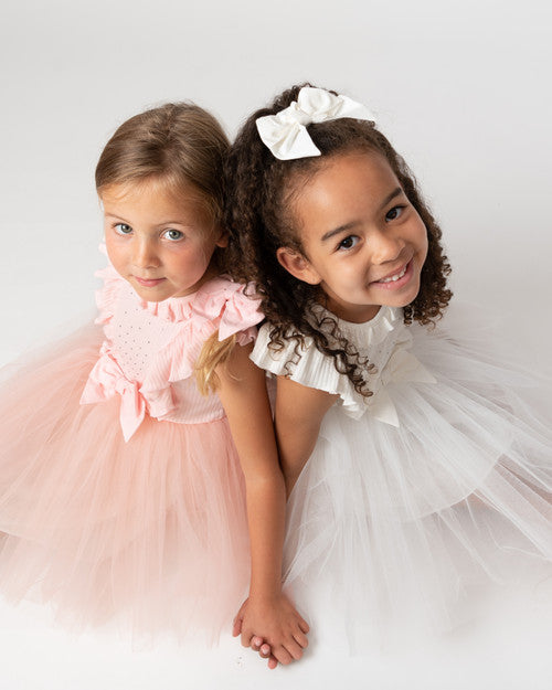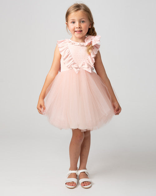 Caramelo Kids Pink Ribbed Tulle Dress With Headband - 032186