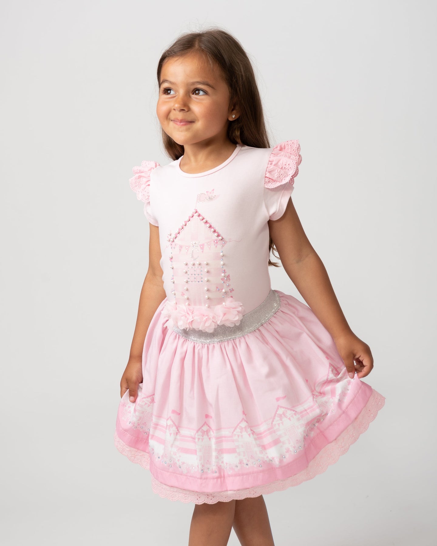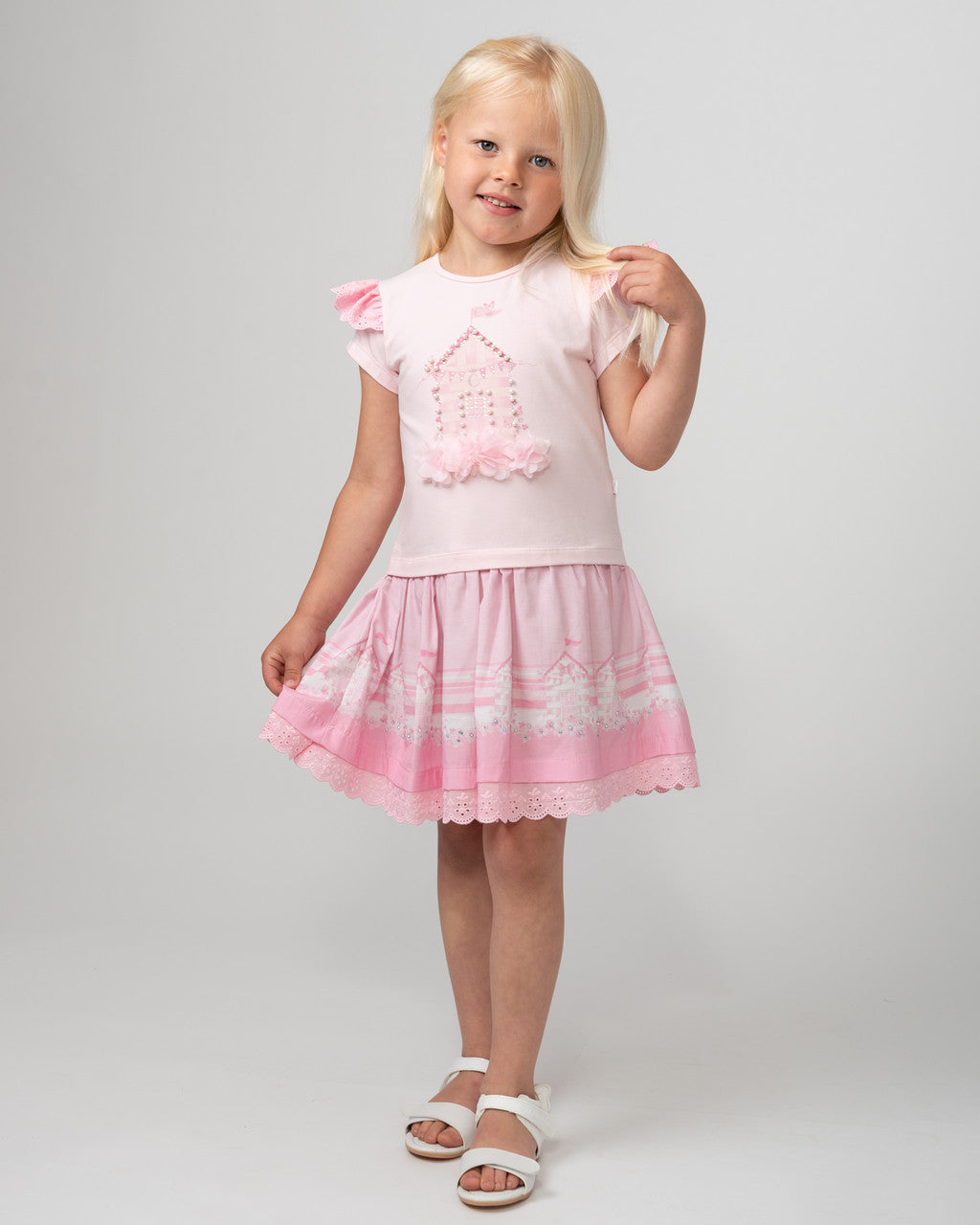 Caramelo Kids Pink Beach Hut Skirt Set with Broderie Trim - 0122124