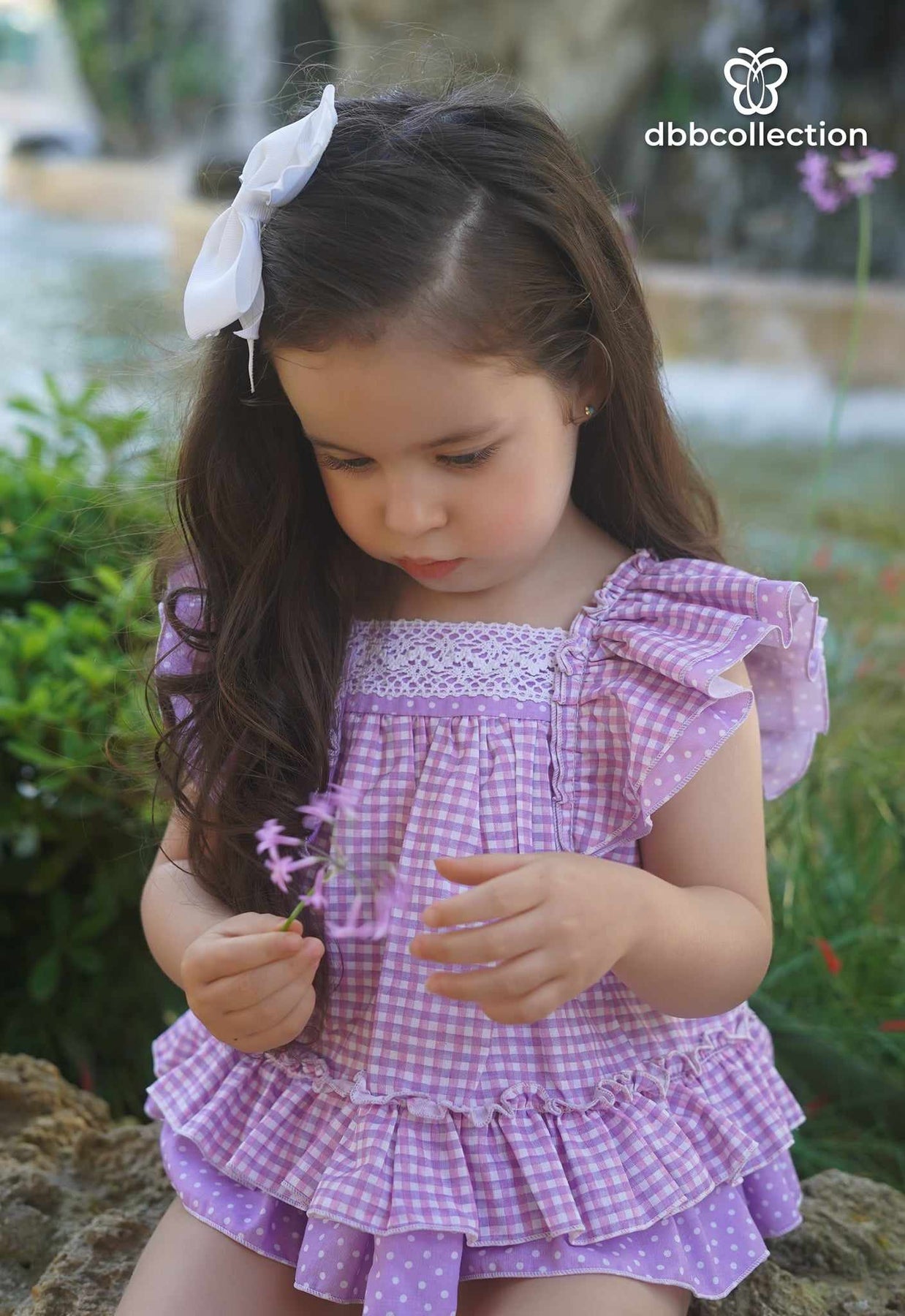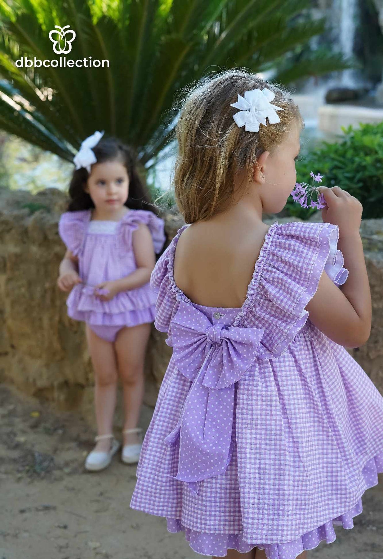 DBB Dress set features a lovely lilac gingham dress and matching pants. Made with high-quality materials, this outfit is stylish and comfortable for any occasion. A perfect addition to your child's wardrobe.
