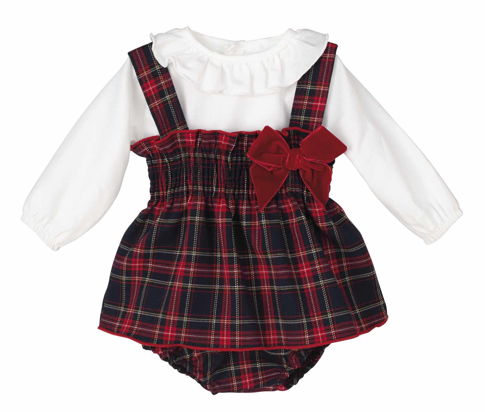 Girls Red Tartan Pinafore Dress & Pants Set - 22047