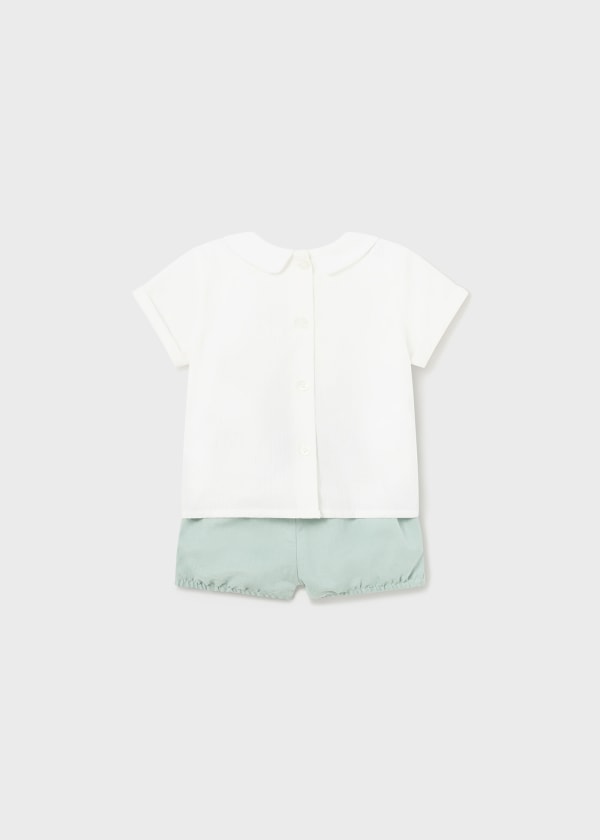 Mayoral Baby Boys 2 Piece Formal Set. Made from European linen, this set features a stylish lagoon color that is both elegant and versatile. Perfect for weddings, christenings, or any formal event, this set will have your baby looking adorable and keep him comfortable.