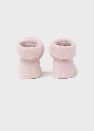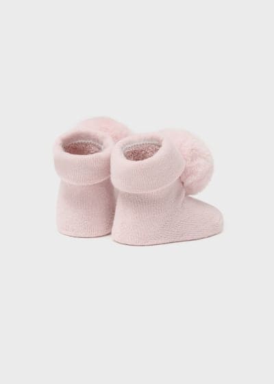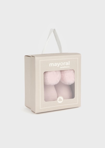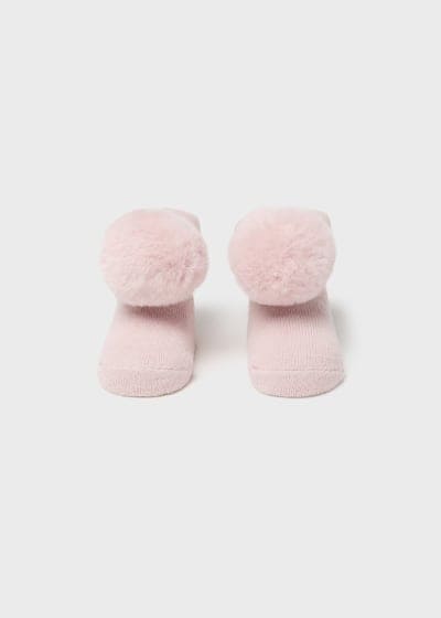 Socks for newborn. A perfect accessory to complete any look. Decorative elements: pompoms. This item comes presented in a box from the Newborn collection, ideal to be given as a gift on special occasions.