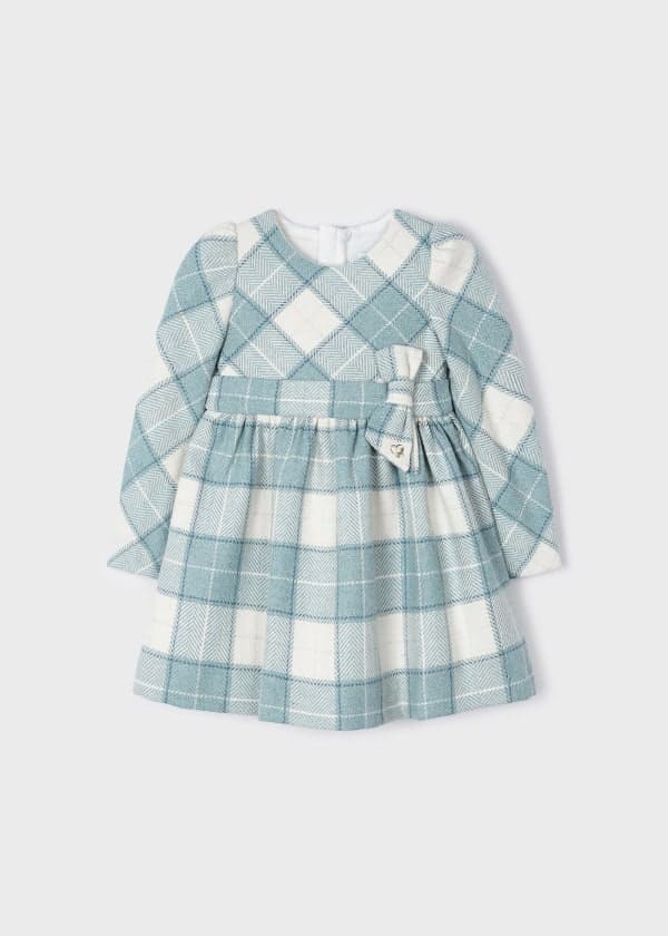 Mayoral girls dress opening on the back with an invisible zip. Decorative elements: bow applique. Checked pattern. Item belonging to our more elegant and exclusive collection used to dress the your girls on special occasions.