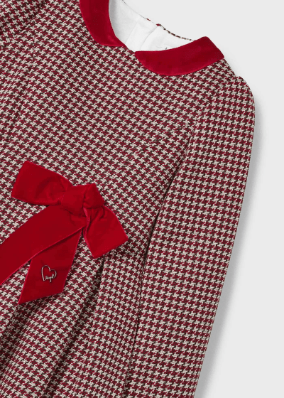Mayoral Long Sleeved Red Dog Tooth Dress - 4916 - Red