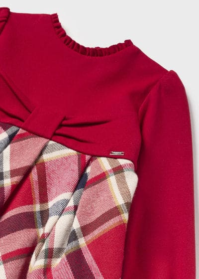 Long sleeved dress with elasticated cuffs for baby. Opening on the back with an invisible zip. Made using a mix of carefully selected fabrics combined to create a different, unique design. Decorative elements: decorative ruffles. Checked pattern.