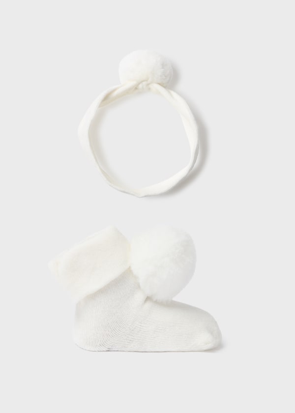 Mayoral Pom Pom Socks And Headband Set - 9657 - Ivory