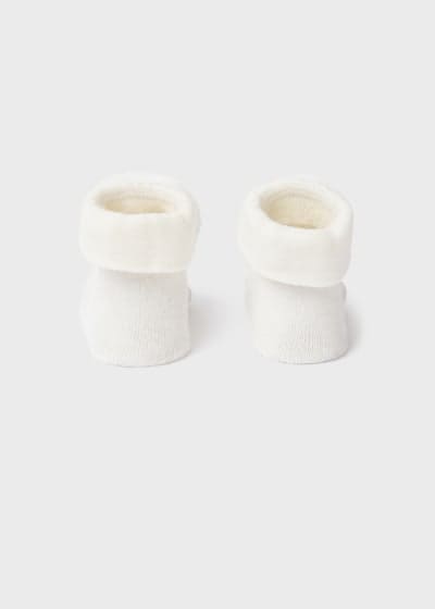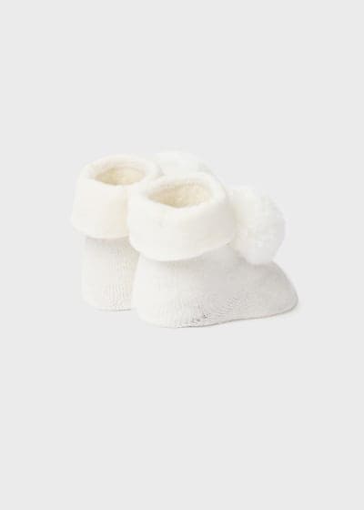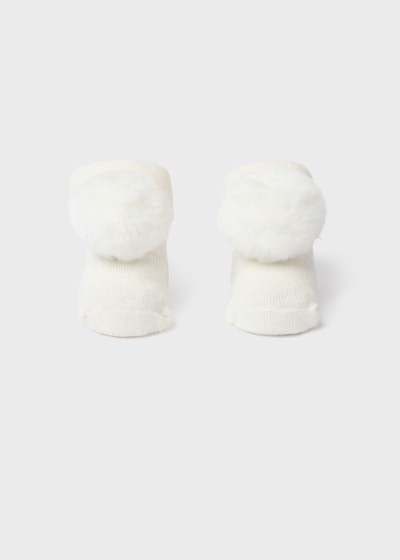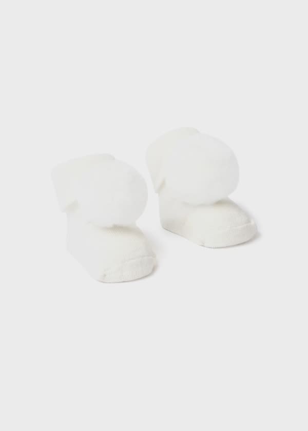 Socks for newborn. A perfect accessory to complete any look. Decorative elements: pompoms. This item comes presented in a box from the Newborn collection, ideal to be given as a gift on special occasions.