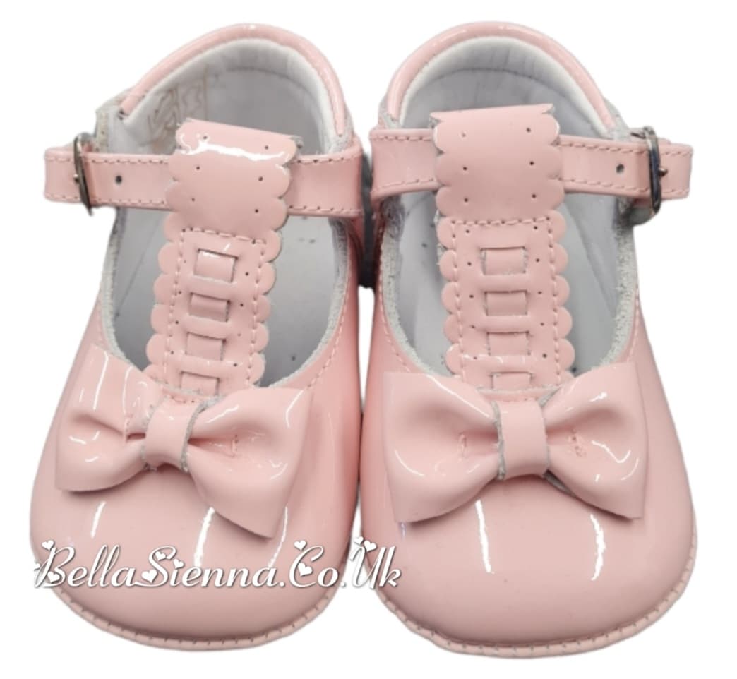 Pretty Originals Pink Patent Leather Bow Pram Shoes - UE03273