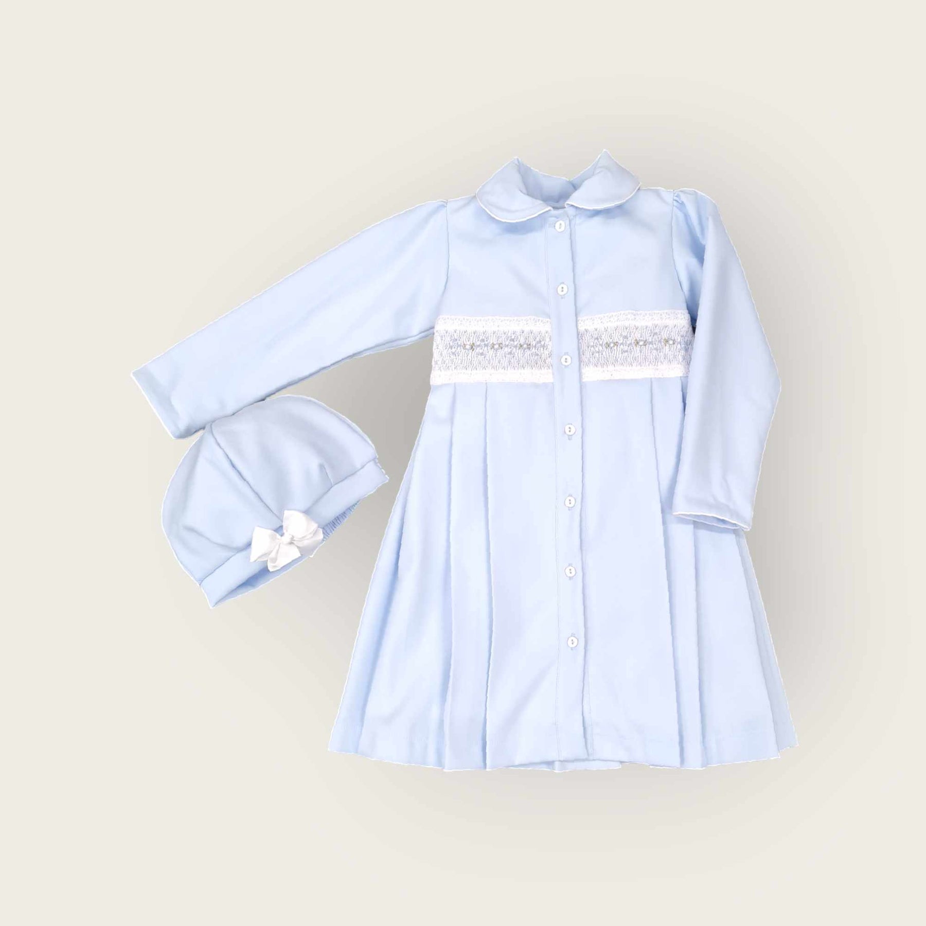 Pretty Originals Pale Blue Traditional Smocked Autumn/Winter Coat And Beret - Exclusive to Bella Sienna - BD02127