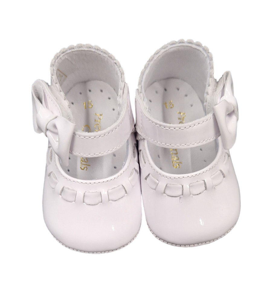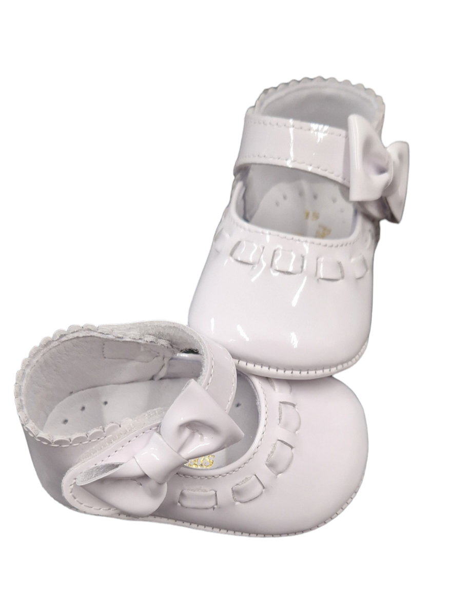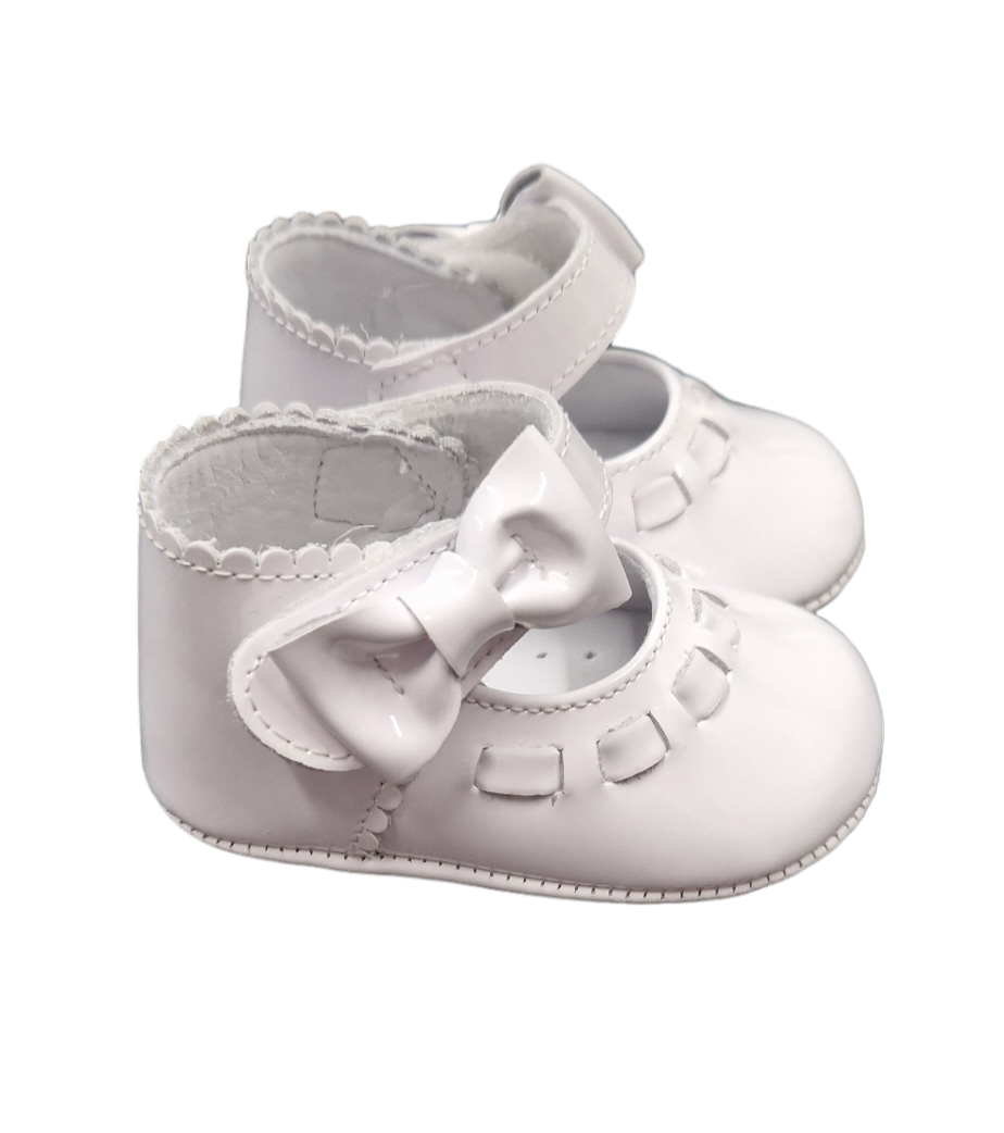 Pretty Originals White Patent Leather Pram Shoes With Bows - UE02648