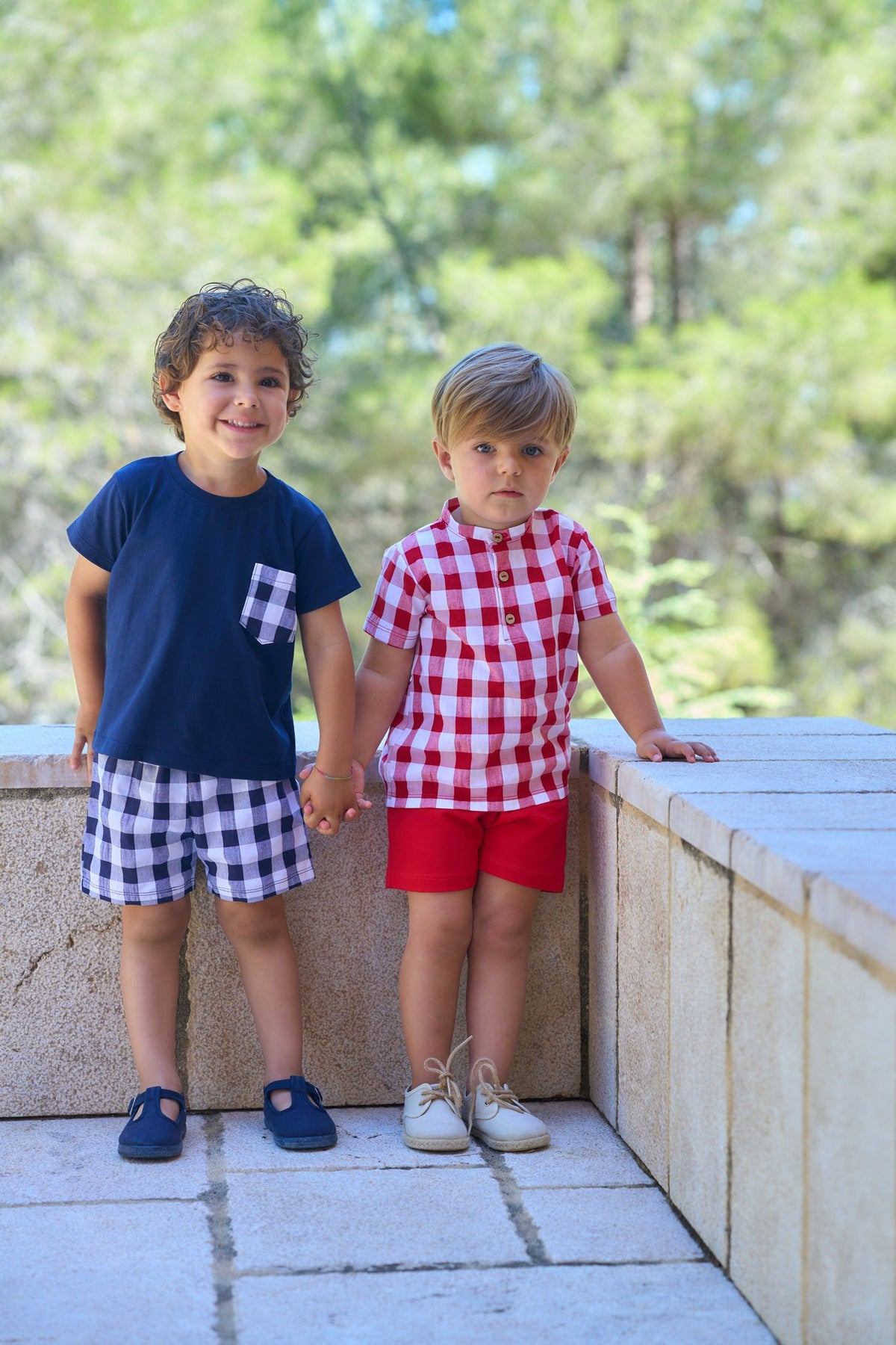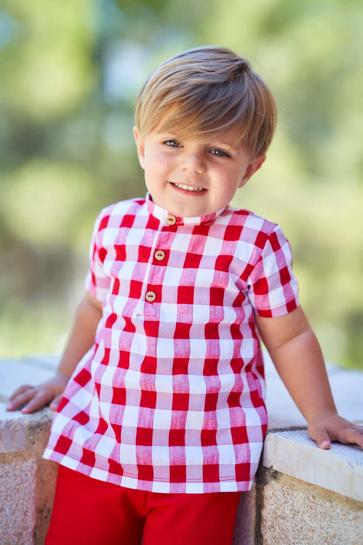 - Rapife boys smart short set with short sleeves . The check shirt also comes with matching red shorts that have an elasticated waist for a better fit.
