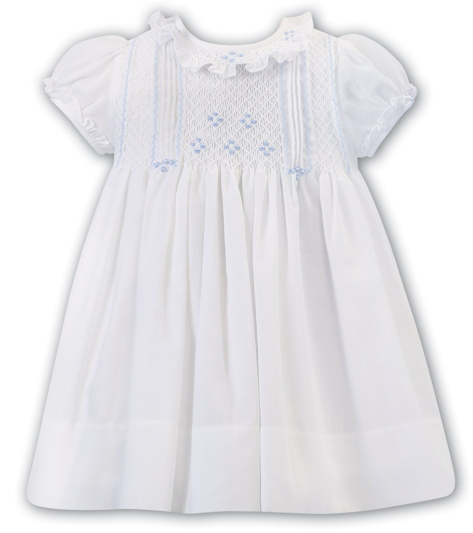 Sarah Louise Ivory & Blue Hand Smocked Dress - 012906