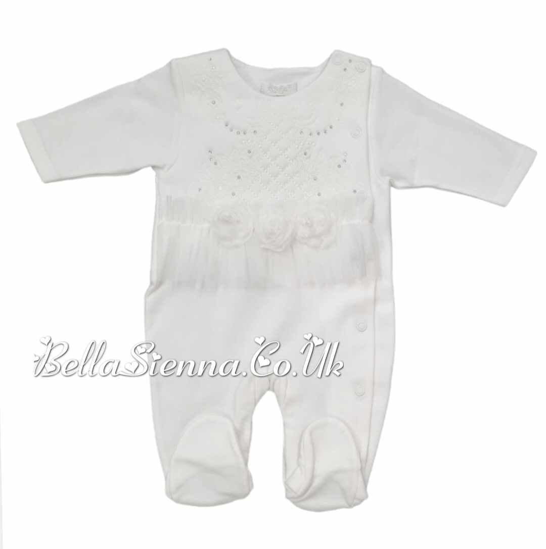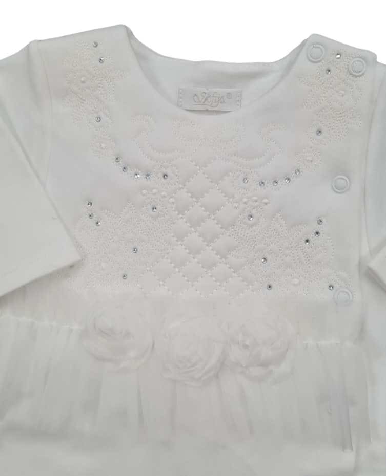 Elegant babygrow for girls for special occasions and for sleeping. Soft and breathable cotton 100% Oeko-Tex certified. Handmade 3D decoration rose and embroidery.