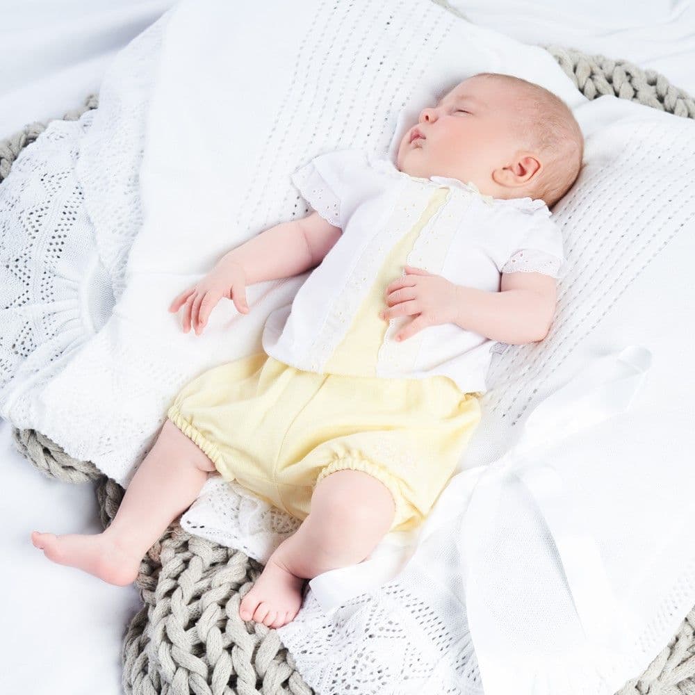 Dandelion Girls Cotton Pique Pants & Lace edge top - Lemon & White - AV6088
