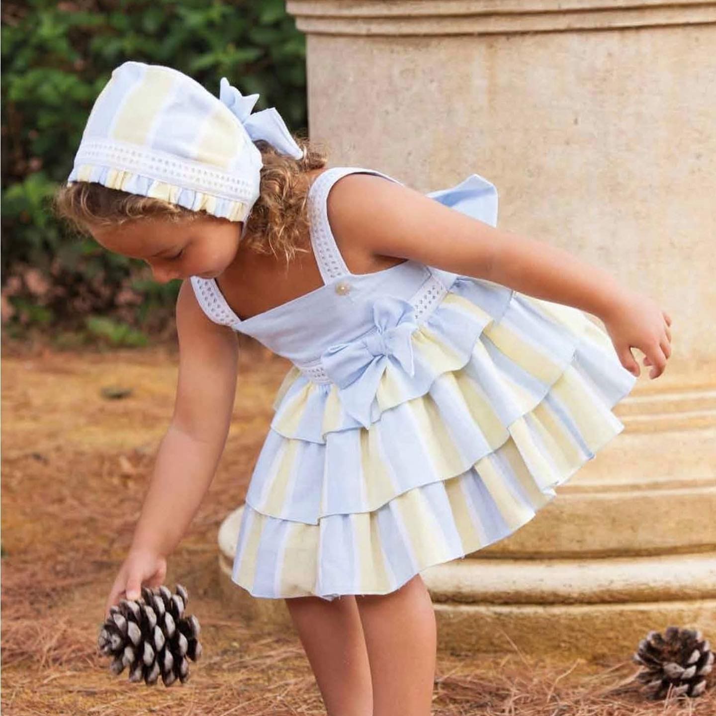 Dbb Collection baby girls Blue/Lemon and white dress set 07001