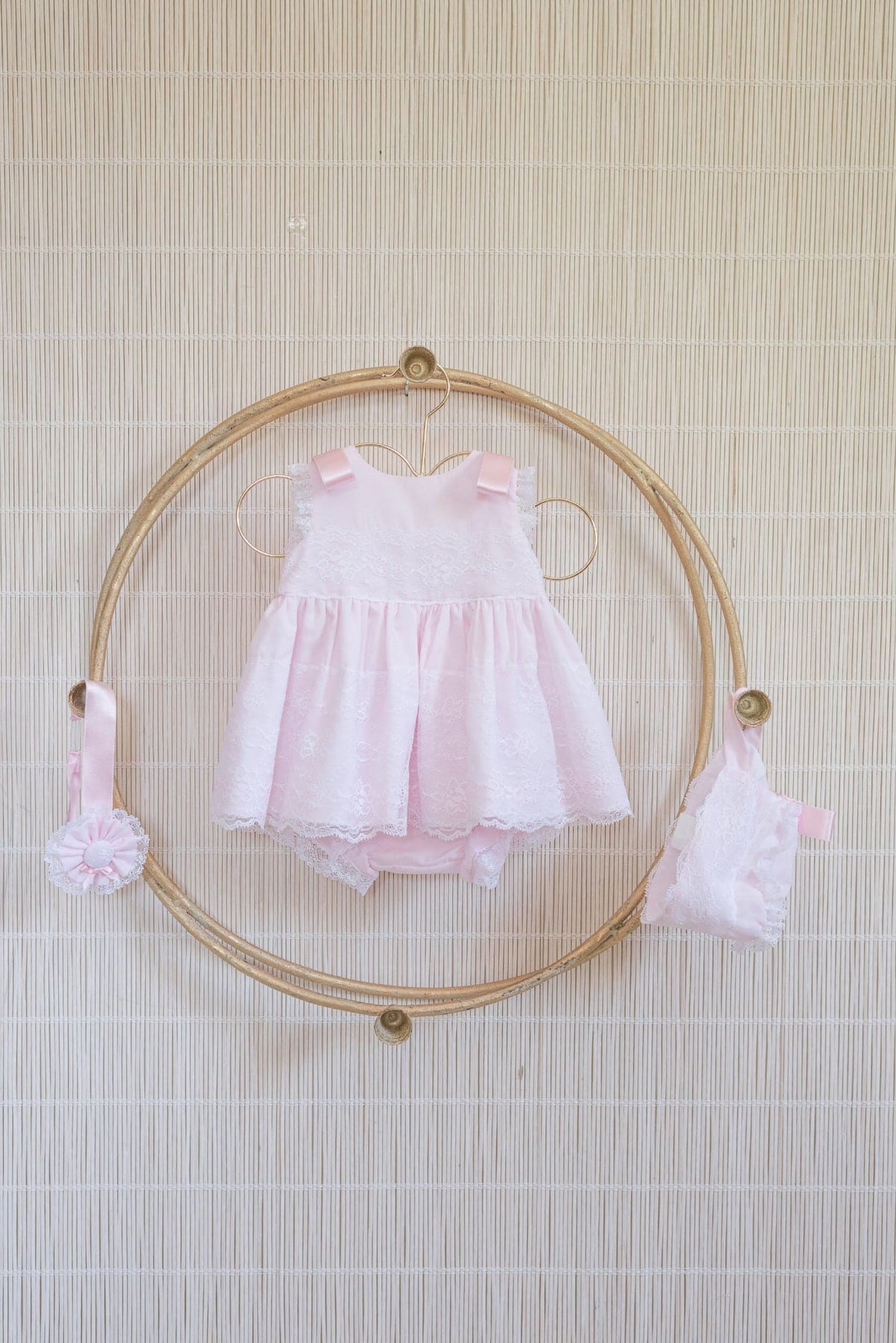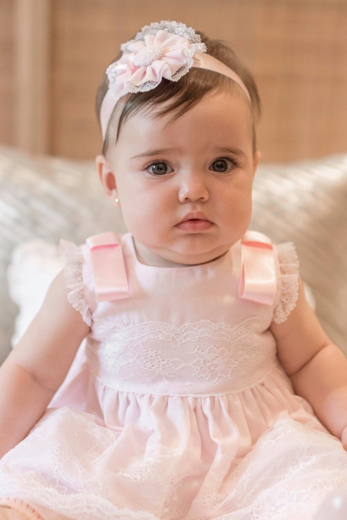 This Dolce Petit Girls Pink Dress Set is perfect for formal occasions. Crafted from high quality fabrics with intricate lace detailing, this dress has a satin bow on the shoulder and fully lined buttons and bow on the back. A beautiful dress for the special occasions.
