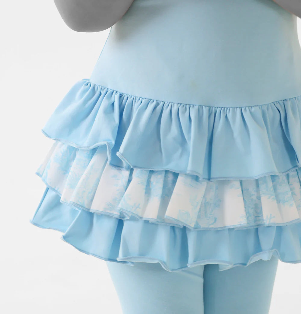 Harris Kids "Willow" Girls Frilly Bow Paisley Print Tracksuit Leggings Set - Blue