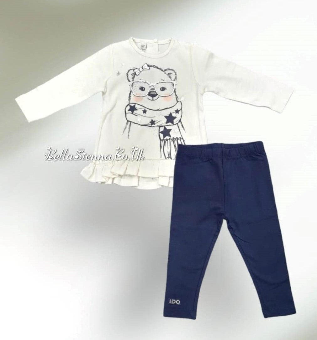 This iDO Girls Legging Set 8135 features a stylish two-piece design with ruffles and embellishments for a fashionable look. The top and leggings are made with a high-quality, comfortable fabric. Perfect for active play or special occasions!