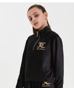 Juicy Couture black ribbed velour 1/4 zip jumper with JC Juicy Couture branding