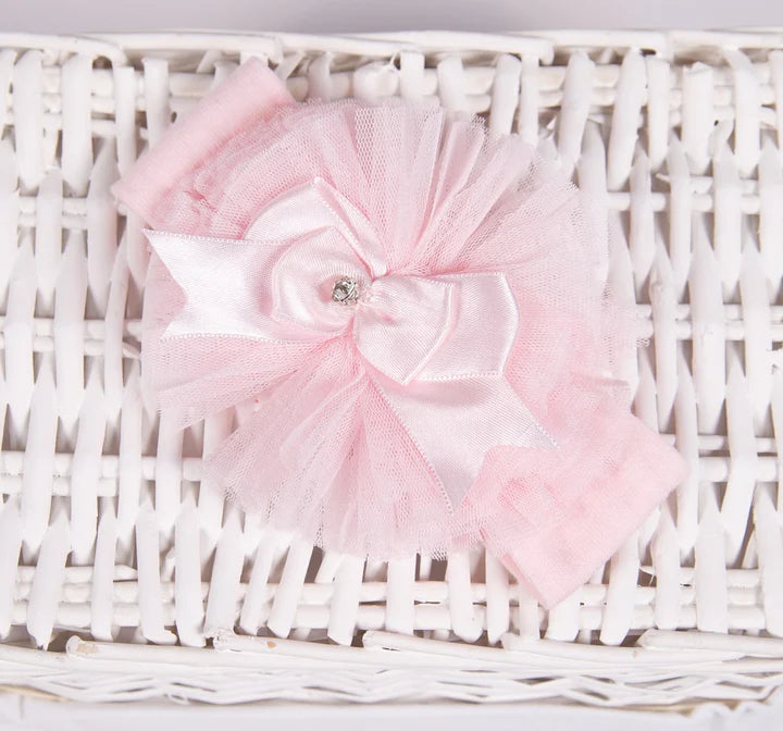 Large Pink Tulle Bow Headband With Thick Band