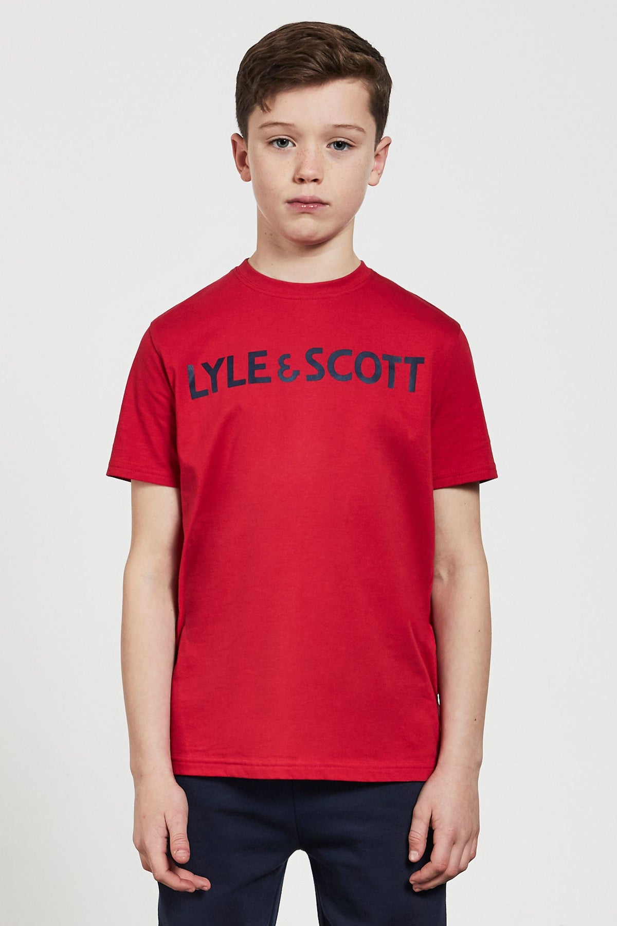 Lyle & Scott Red T-shirt With Navy Writing - LSC0896 - Tango Red