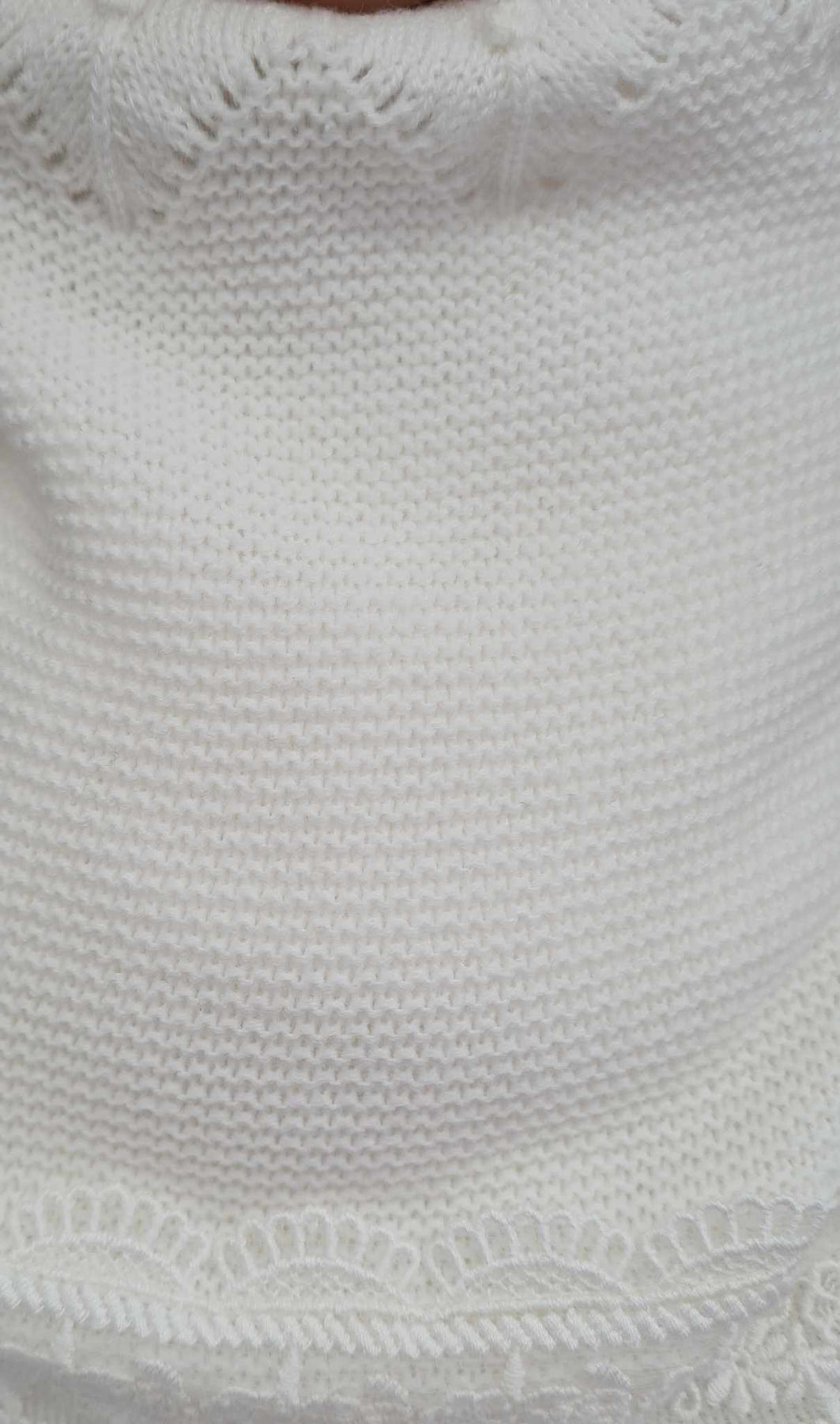 A truly beautiful three-piece set for baby girls set Mac Ilusion . With all items being made in a cotton blend, the ivory knitted outfit consists of long-sleeve top with delicate lace and leggings. The crocheted top has a rounded neckline, long sleeves, buttons to fasten. The leggings have an elasticated waistband.