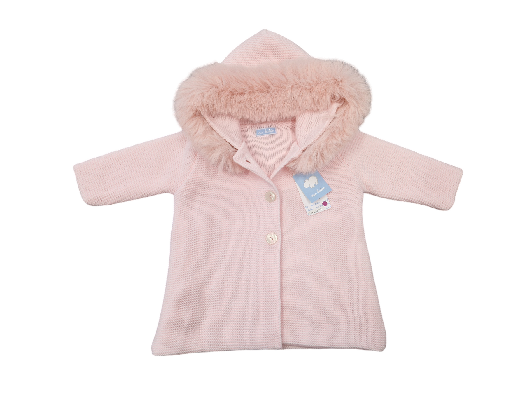 Mac Ilusion collection - soft knitted coat with detachable faux fur trim on the hood, double thickness coat with buttons fastening on the front. Made in Spain - a warm and cozy coat.