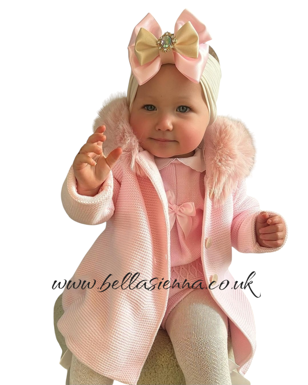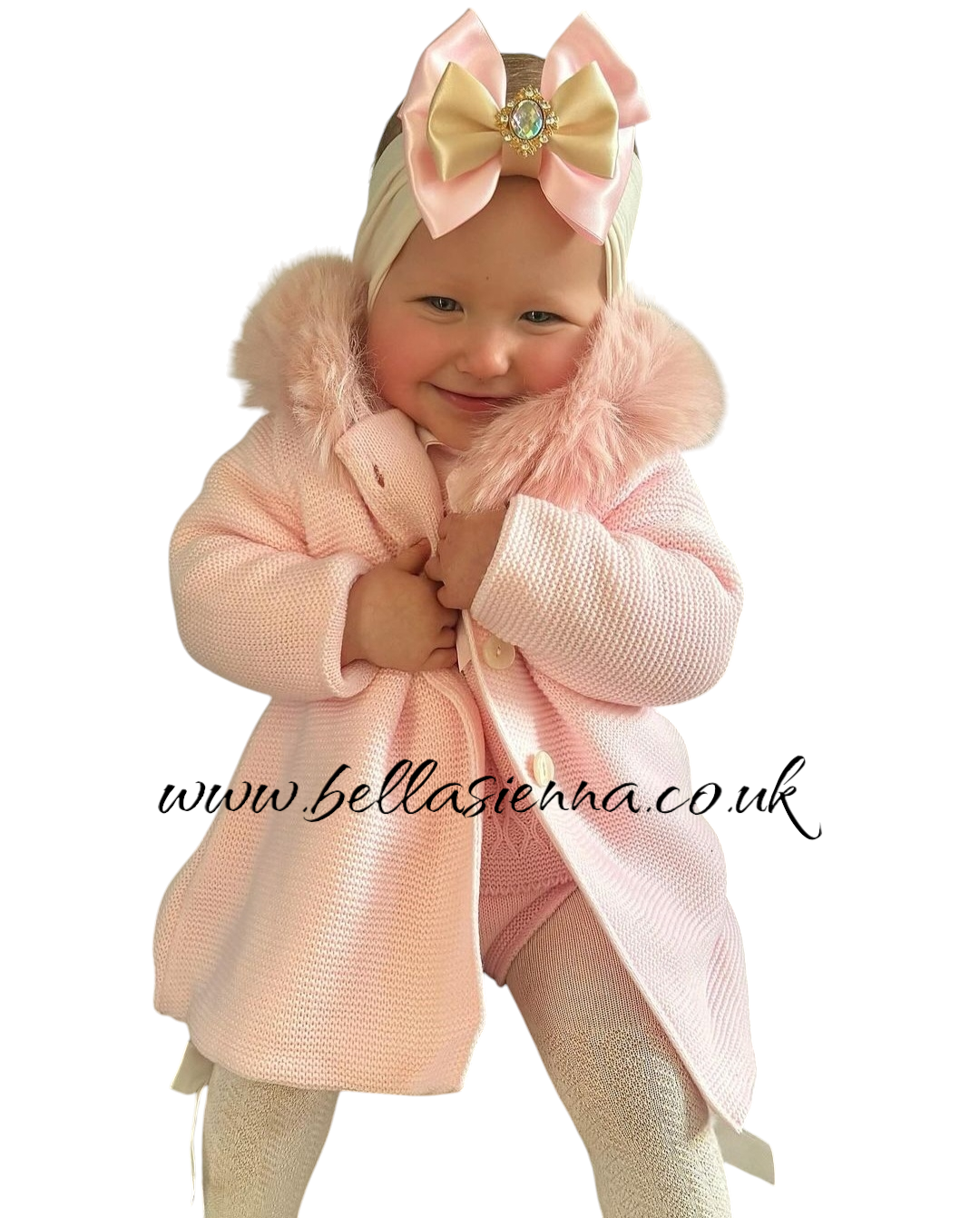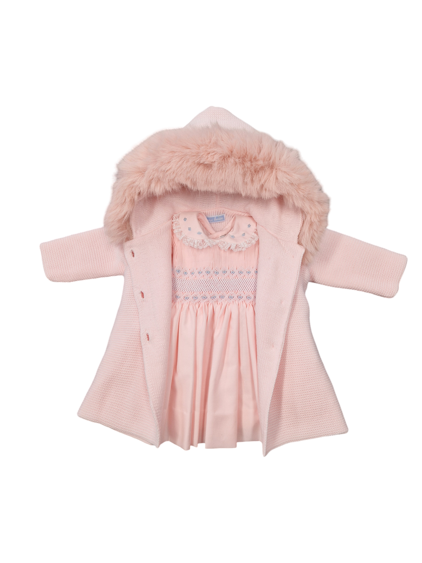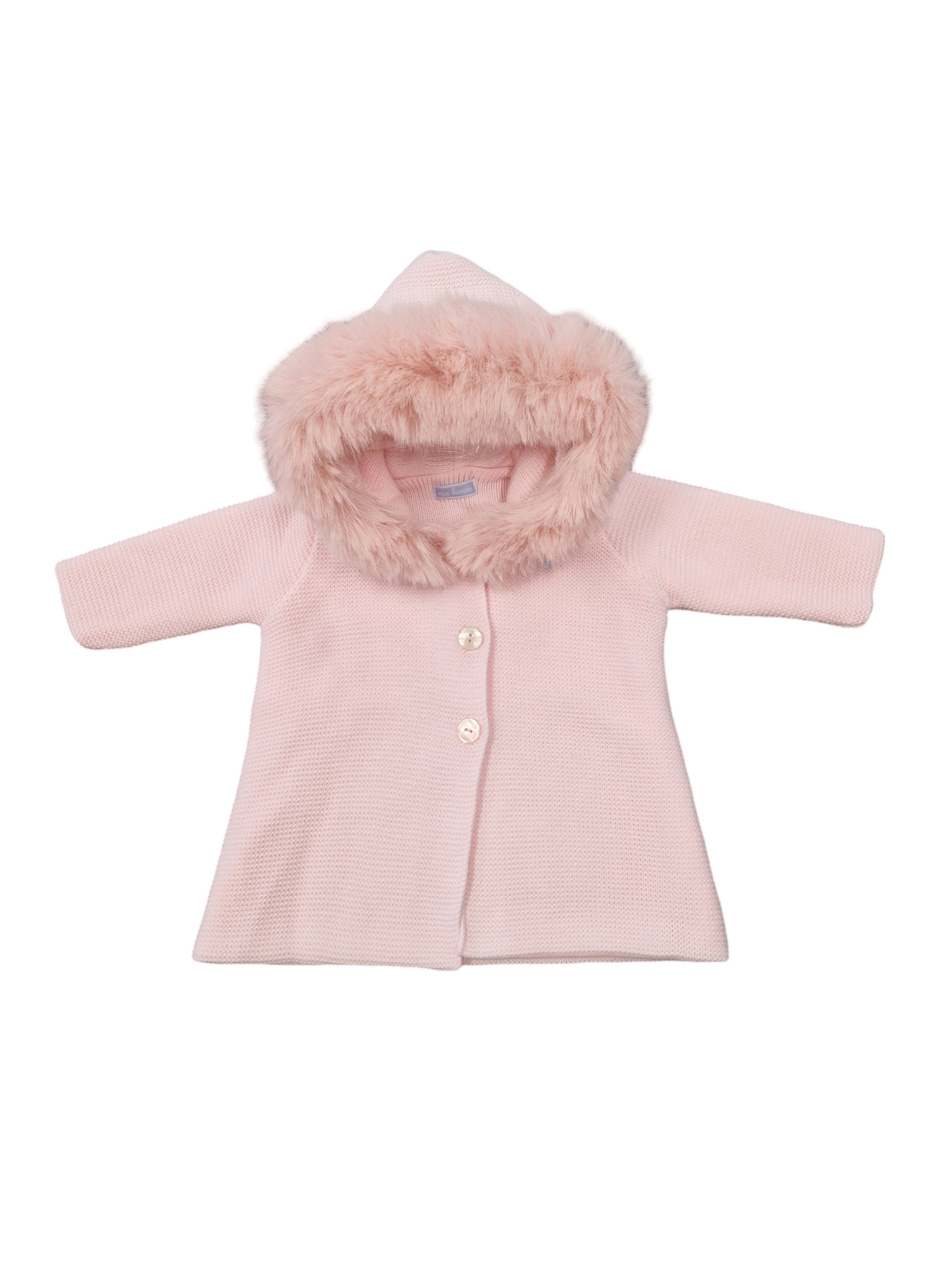 Pale pink knitted jacket with removable fur trim