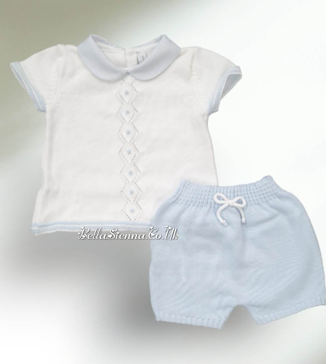 Martin Aranda Baby Boys Fine Knitted Summer Short Set White 10041