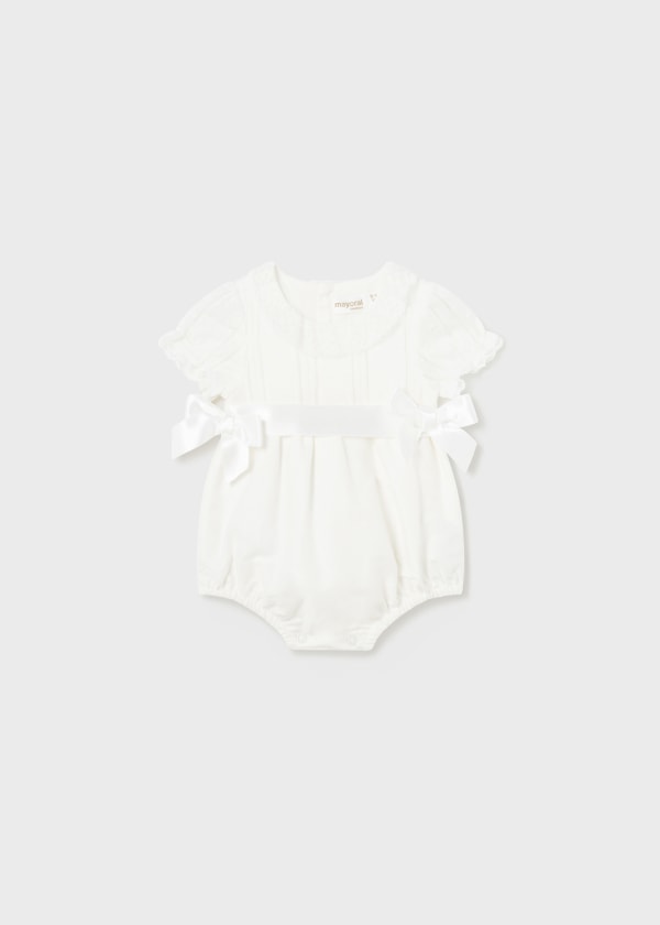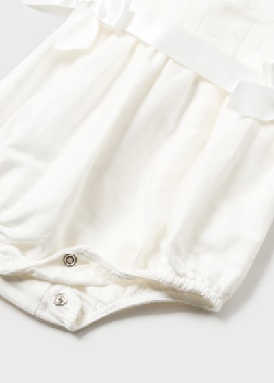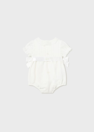 Mayoral Baby Ceremonial Romper With Lace Detail & Bows - 1630 - Ivory