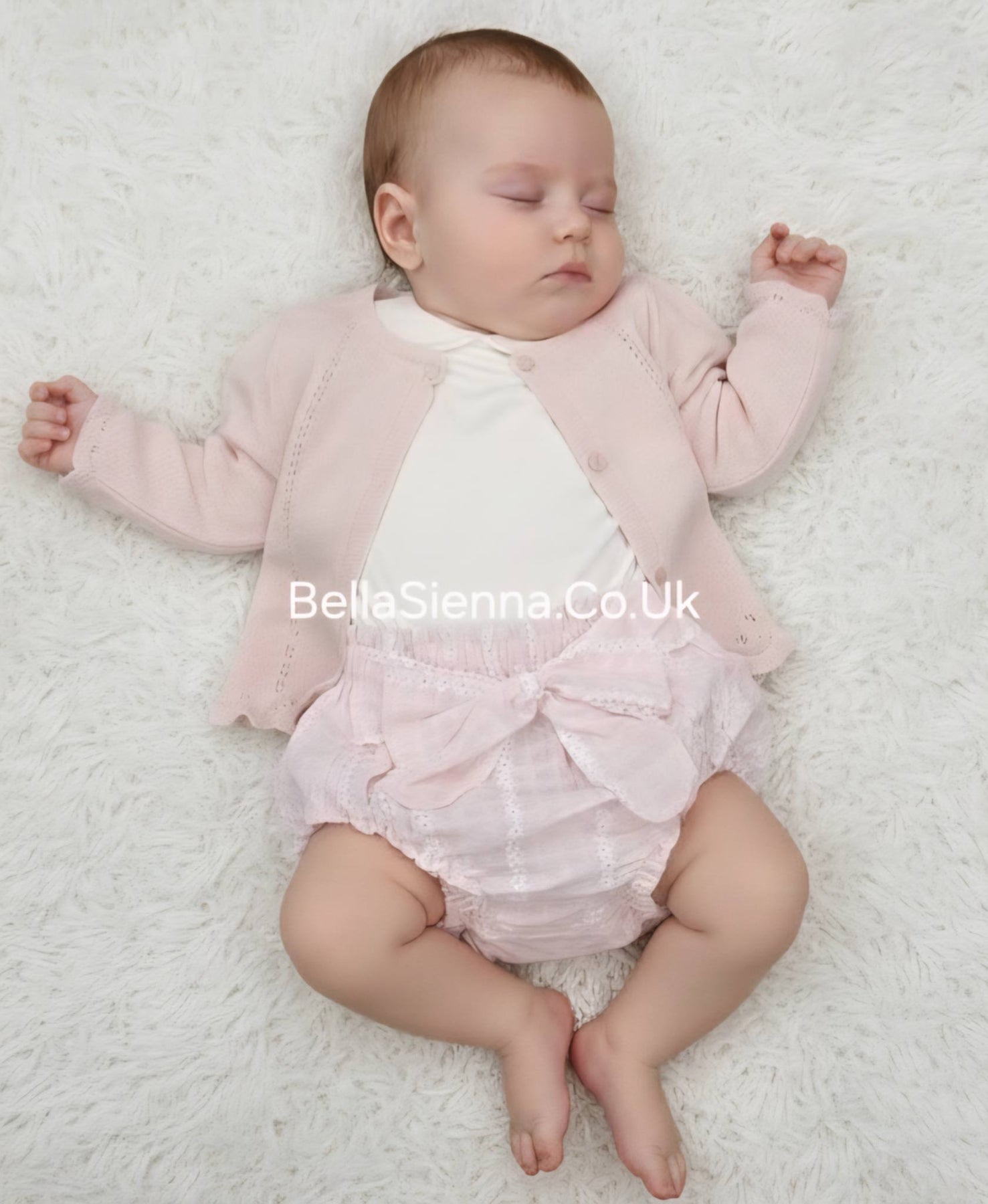 Mayoral Baby Girls Pink Three Piece Daisy Set - Cardigan, Top & Jam Pants With Bow - 1287