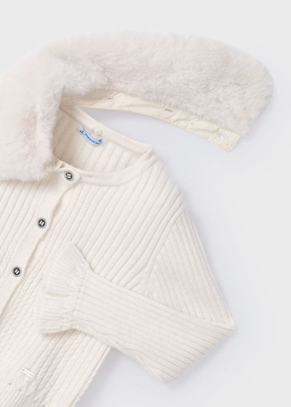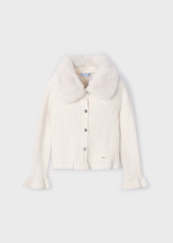 Mayoral Girls Tricot Cardigan With Fur Collar -4362 - Cream - Milk Vig