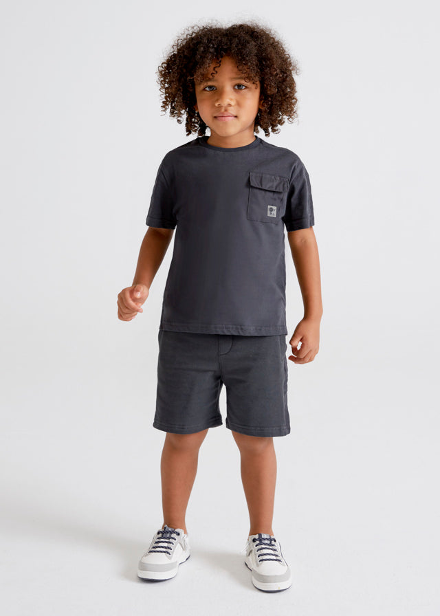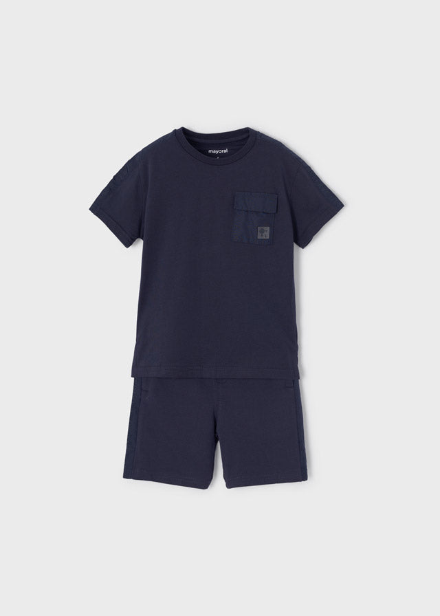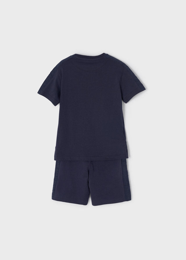 Mayoral boys shorts set features a lightweight cotton blend for breathable comfort and long-lasting quality. The elasticated waistband allows for easy fit adjustment and the polo collar.
