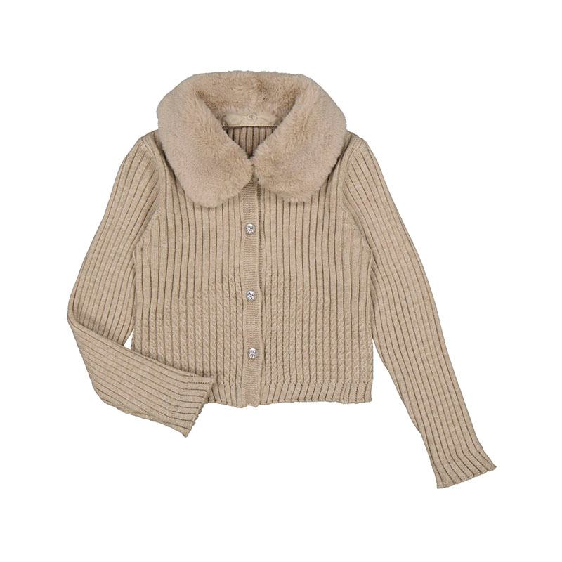 Mayoral Faux fur neck knitted cardigan girl - 4309