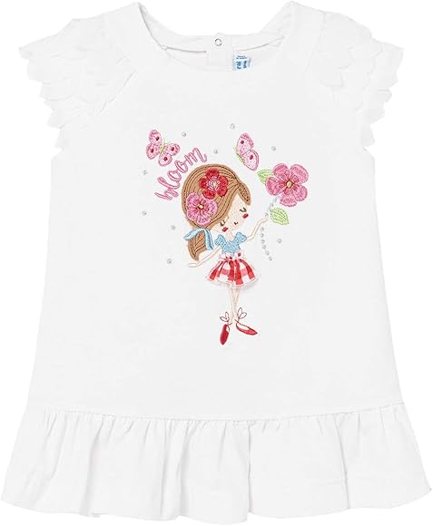Welcome summer in style with this stunning Mayoral baby dress! The lightweight fabric is perfect for those hot days, and the snap back closure makes it easy to put on and take off. The design on the front is sure to make your little one stand out from the crowd! Make memorable moments and dress them up with this adorable baby dress from Mayoral.