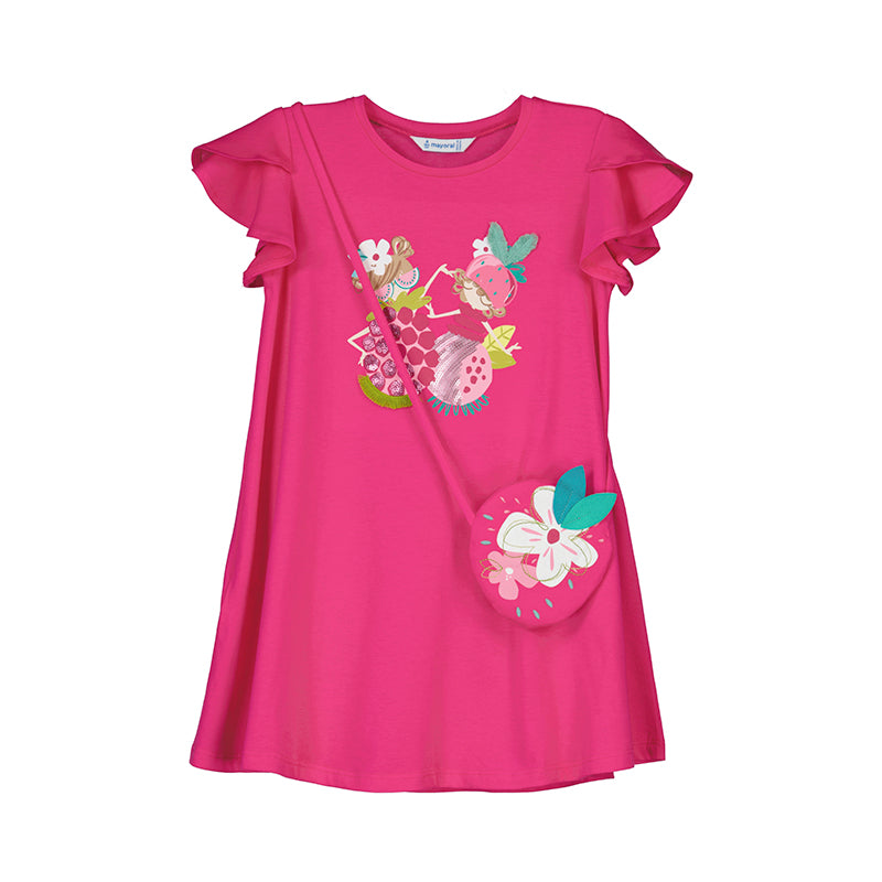 Mayoral Girls Fucsia Pink Dress & Handbag - 3948