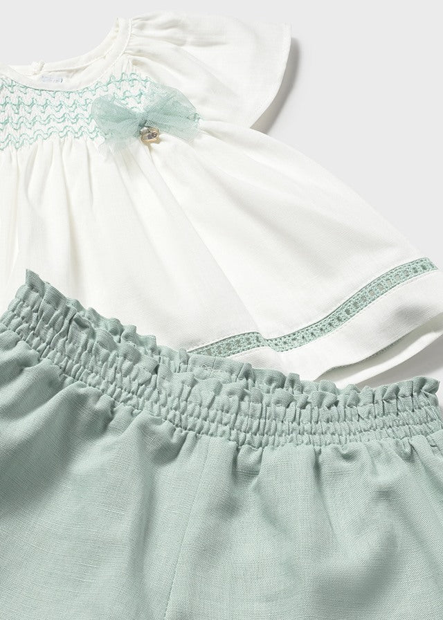 Mayoral Girls Elegant Smocked Shorts Set With Bow - 1212 - Lago - 73