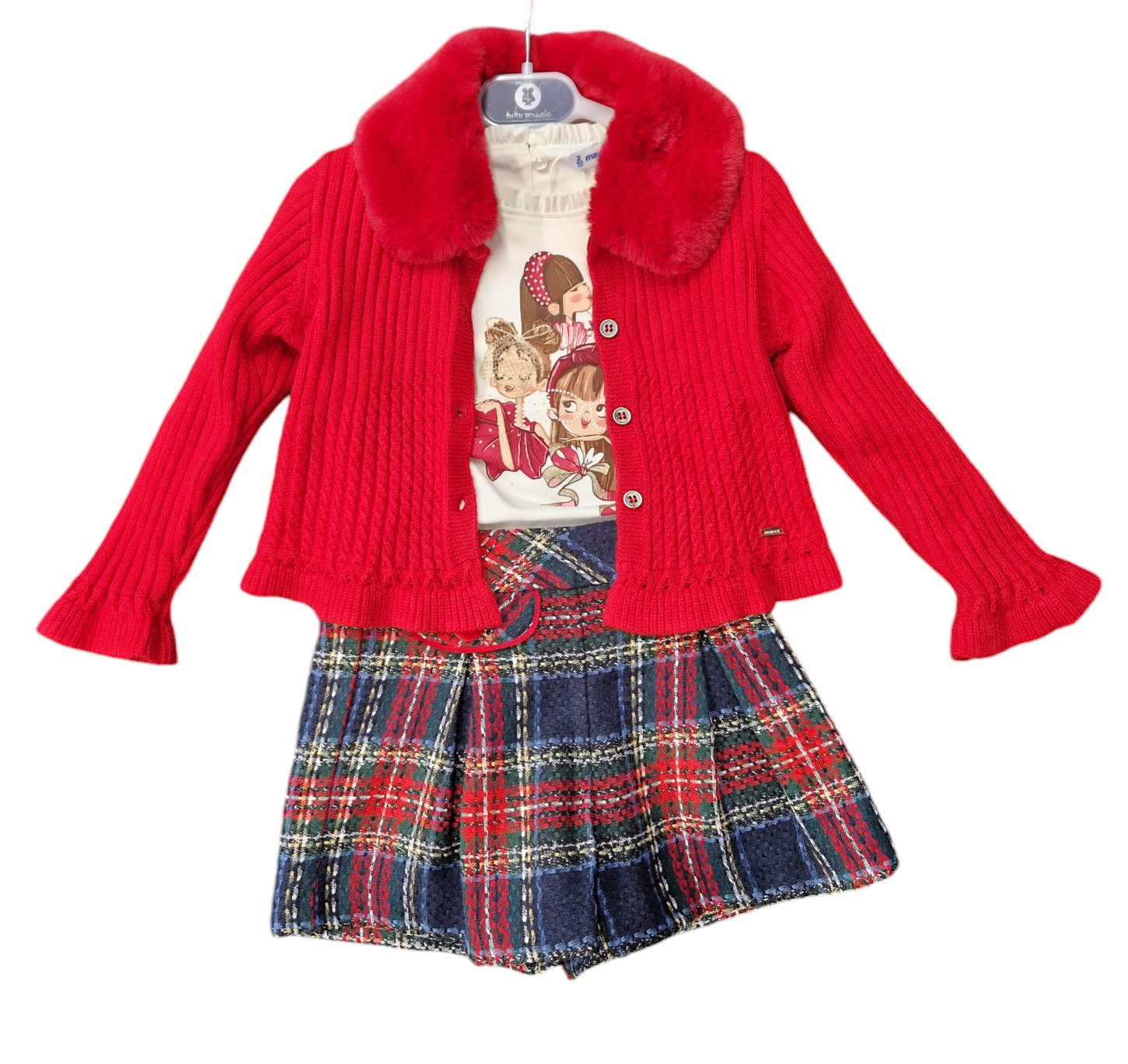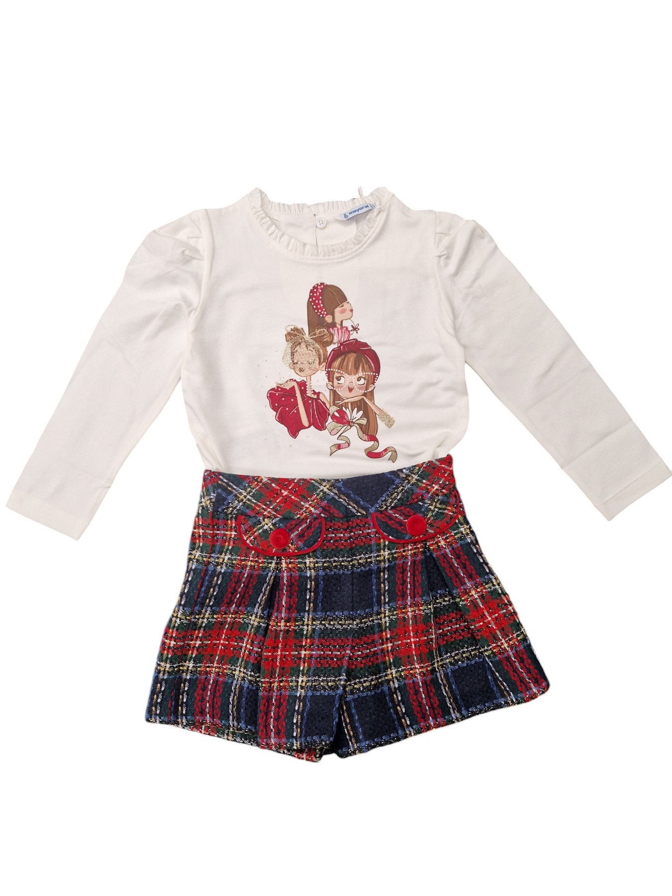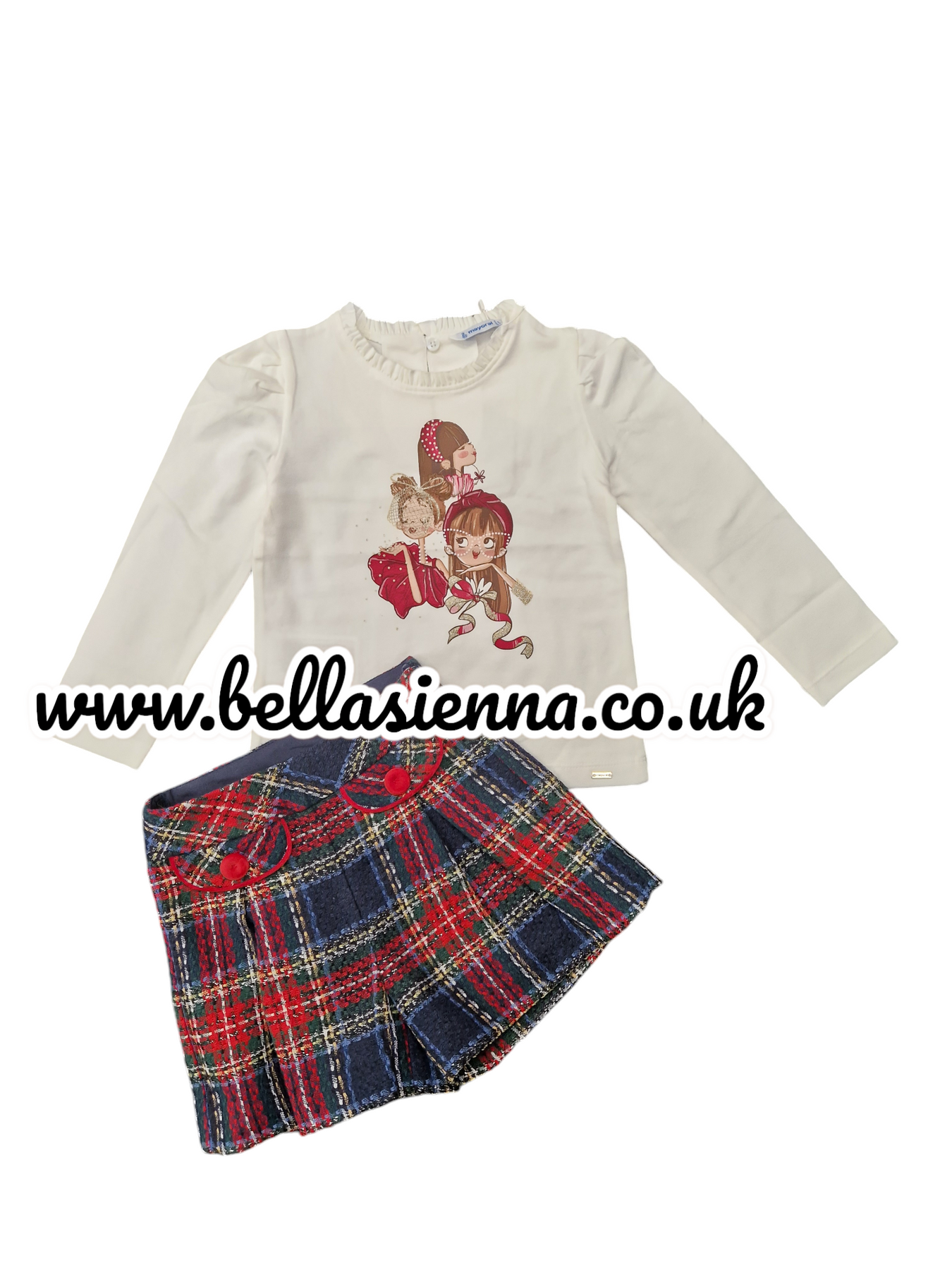 Mayoral Girls Long Sleeved Top & Tweed Look Checked Shorts - 4065 & 4217