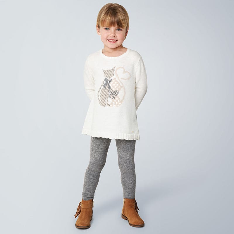Mayoral's delightful knit leggings set for girls! A cozy jumper and trousers made with super soft fabric will keep your girls warm, comfy and looking adorable. With its decorative applique.