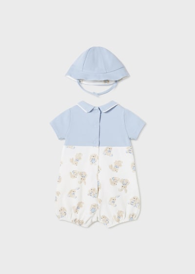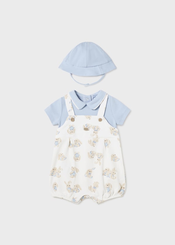 Mayoral Newborn Dungaree Style Bodysuit with Reversible Bucket hat Better Cotton 1616