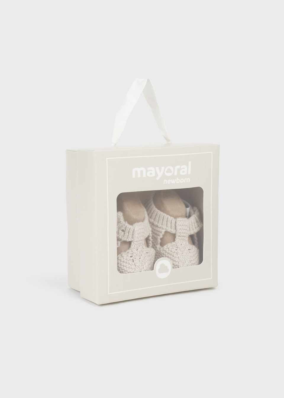 Introducing the Mayoral Newborn Tricot Booties in Off White. These booties are designed to keep your little one's feet warm and comfortable while also adding a touch of style to their outfit. Made from high-quality tricot fabric, they are soft and gentle on delicate skin. Perfect for any occasion.