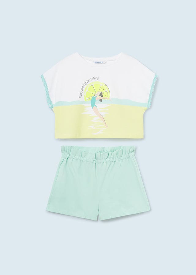 Discover the perfect summer look for your girl with the Mayoral Older Girls Short Set Crafted from sustainable cotton with an elasticated waistband to give her an effortless fit and incredible comfort. T-shirt features a feminine round neckline and a stylish patterned design!